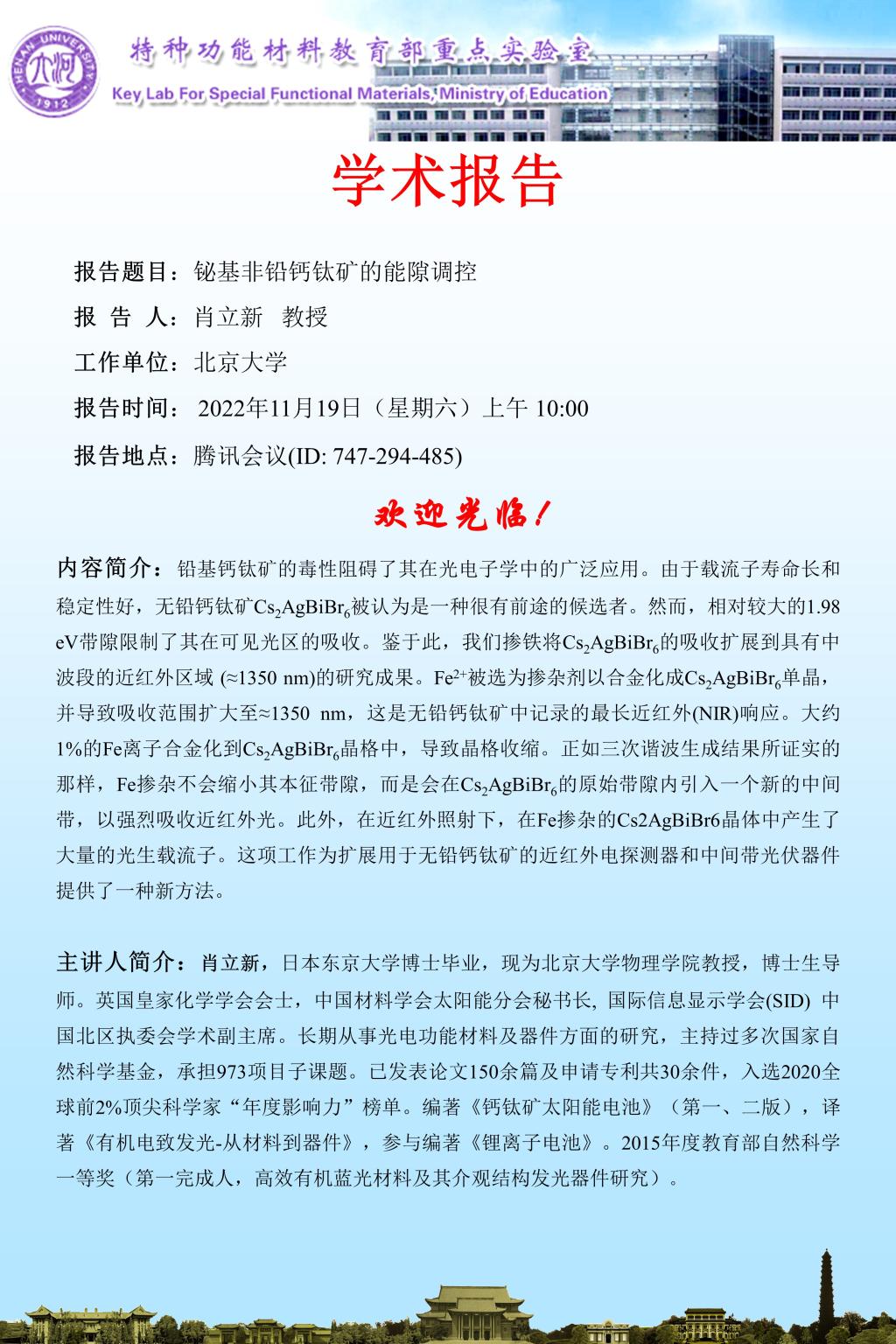 肖立新:铋基非铅钙钛矿的能隙调控(时间11.19)