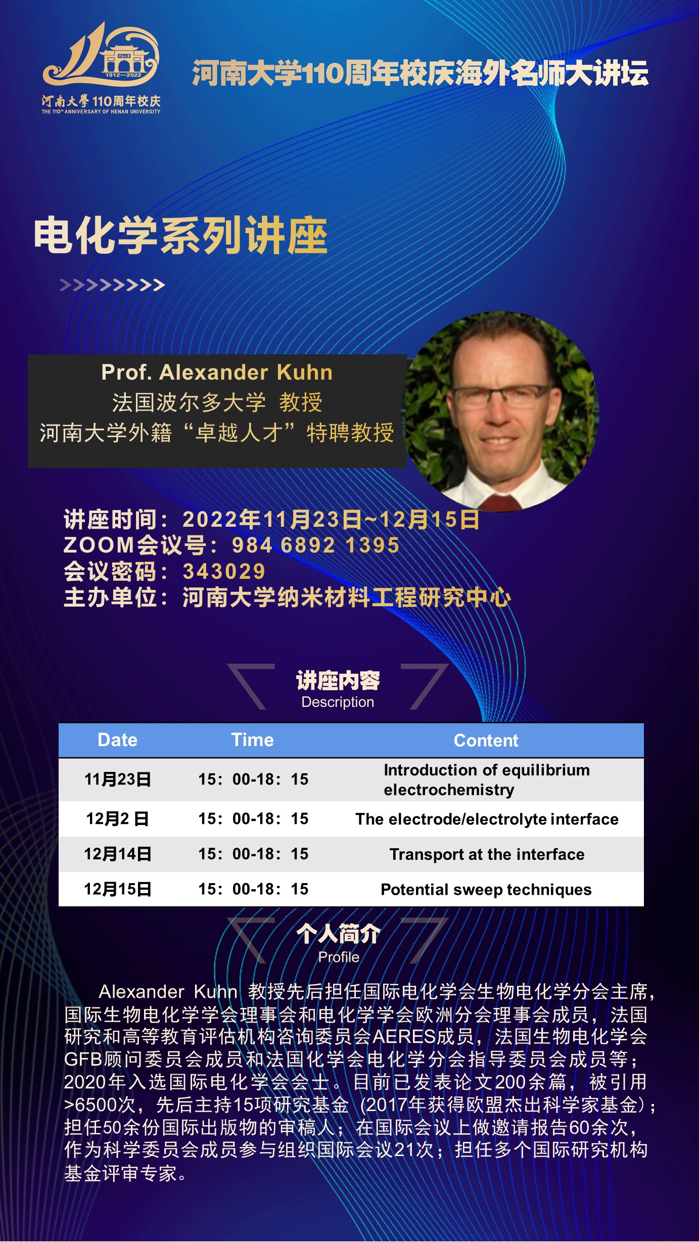 海外名师大讲坛:Alexander Kuhn(时间11.23-12.25)