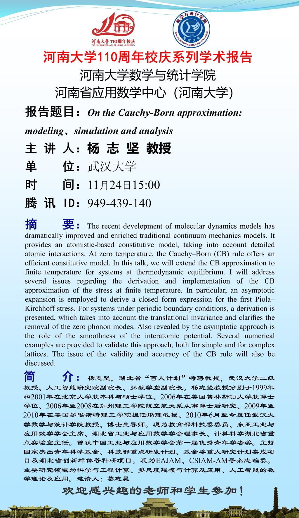 杨志坚:On the Cauchy-Born approximation: modeling、simulation and analysis(时间:11.24)