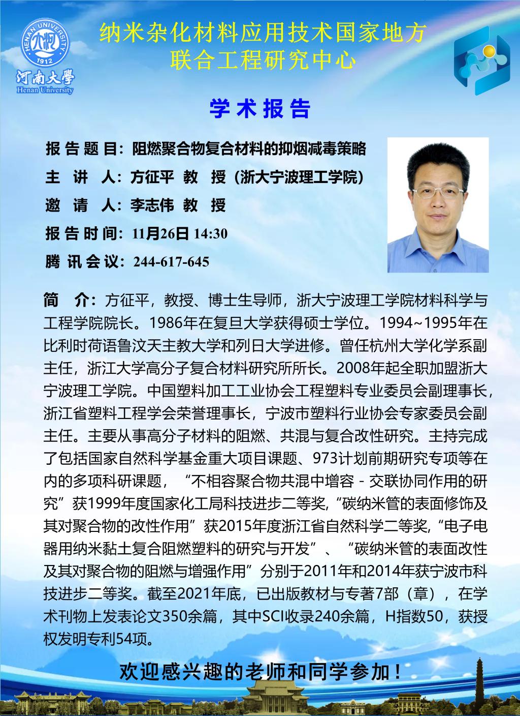 方征平:阻燃聚合物复合材料的抑烟减毒策略(时间11.26)