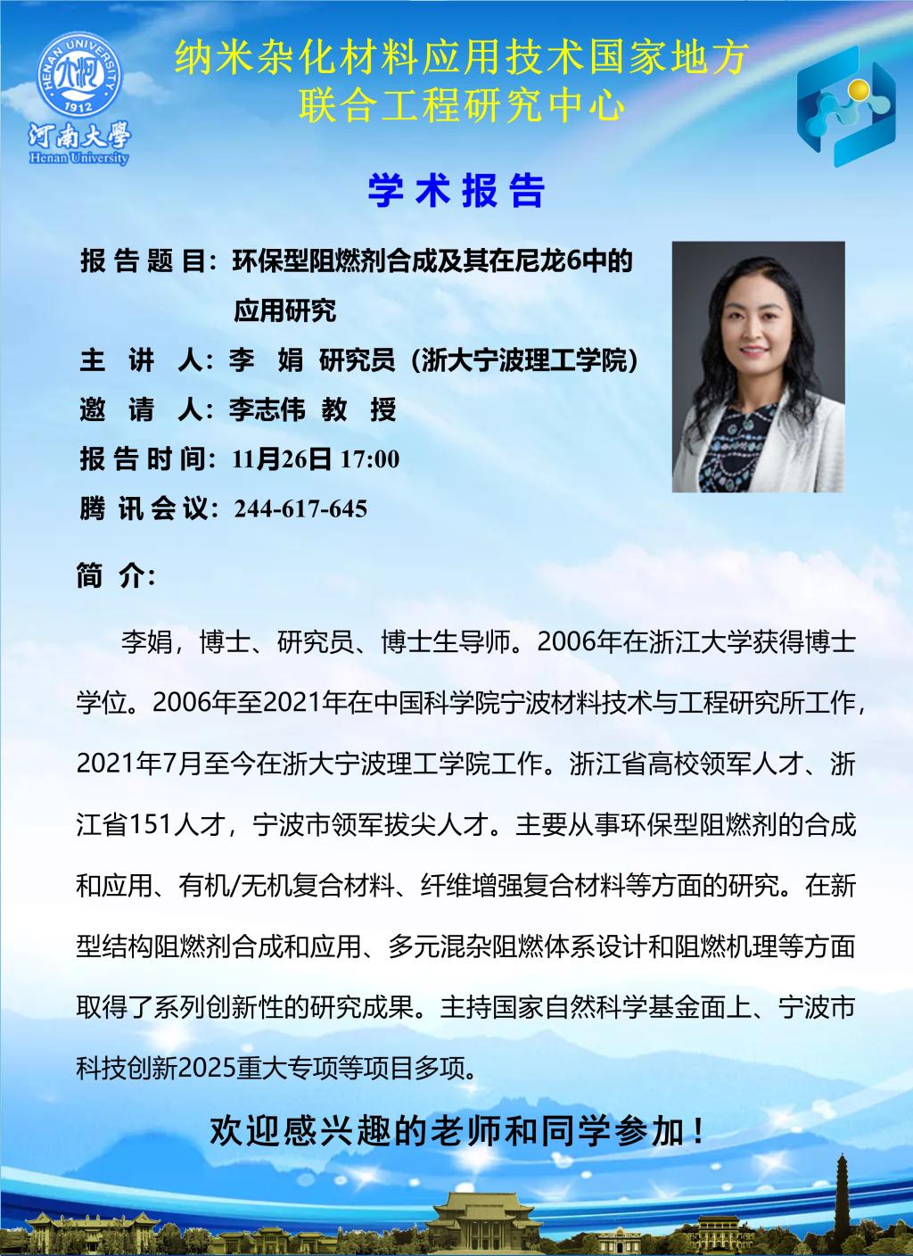 李娟:环保型阻燃剂合成及其在尼龙6中的应用研究(时间11.26)