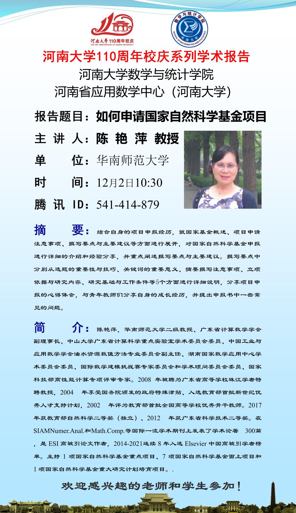 陈艳萍:如何申请国家自然科学基金项目(时间:12.2)