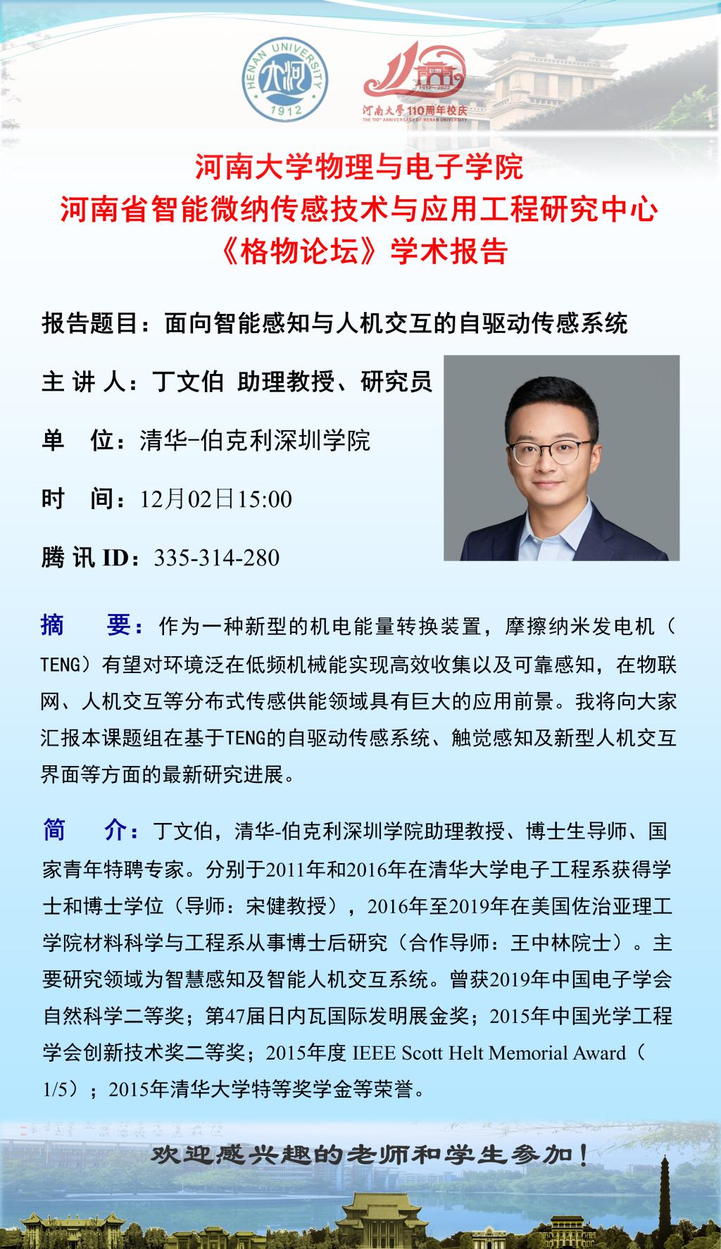 丁文伯:面向智能感知与人机交互的自驱动传感系统(时间12.2)