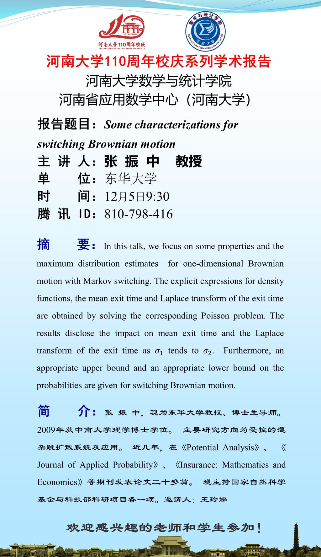 张振中:Some characterizations for switching Brownian motion(时间:12.5)