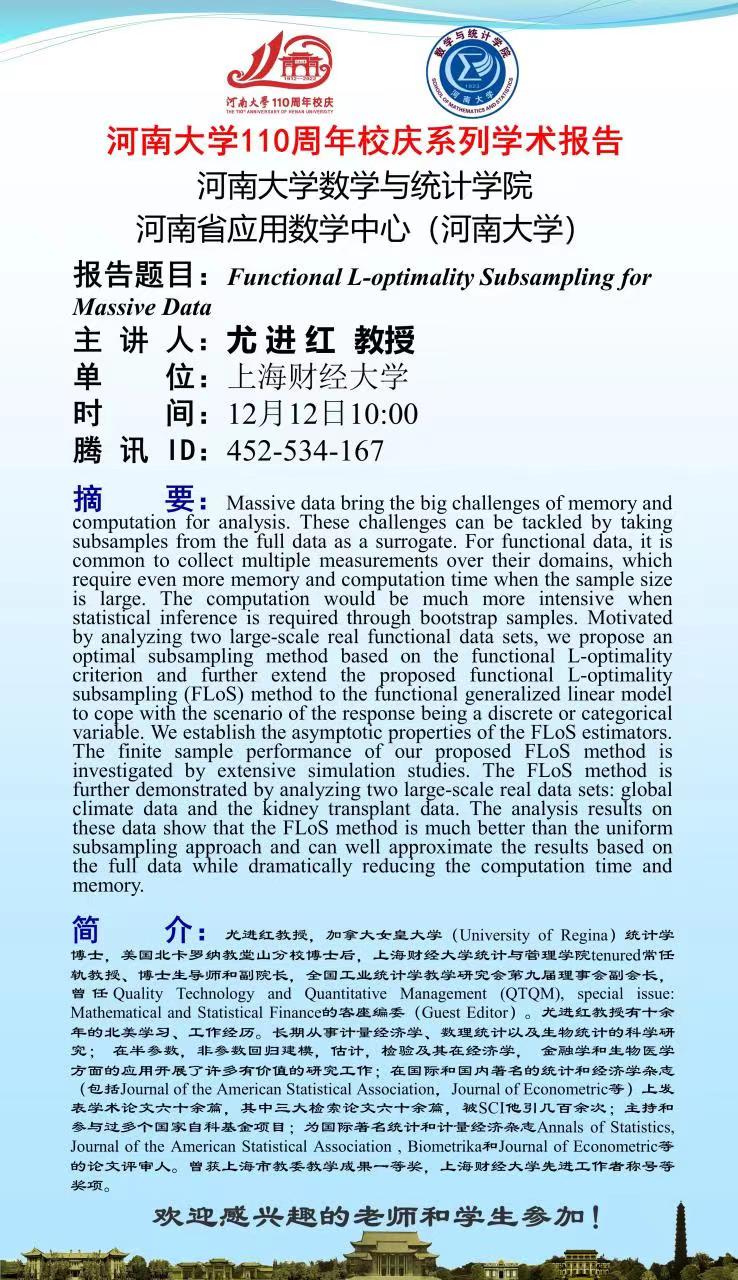 尤进红:Functional L-optimality Subsampling for Massive Data(时间:12.12)