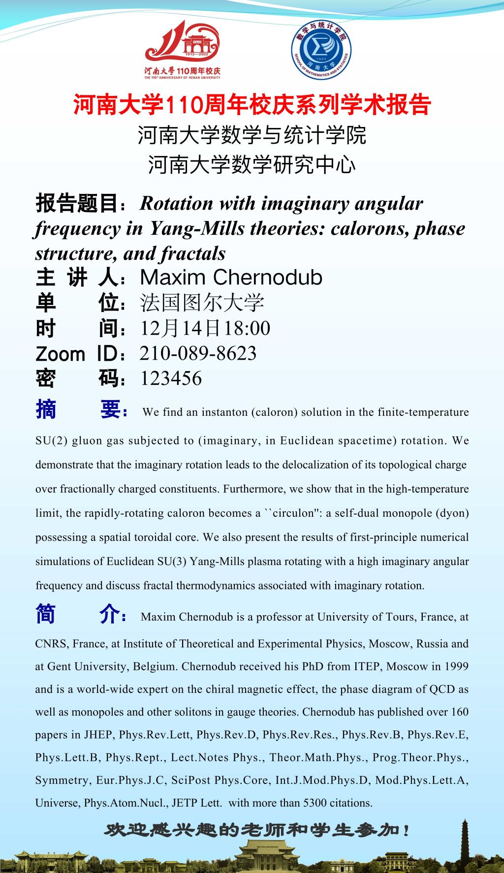 Maxim Chernodub:Rotation with imaginary angular frequency in Yang-Mills theories:calorons, phase structure, and fractals(时间:12.14)