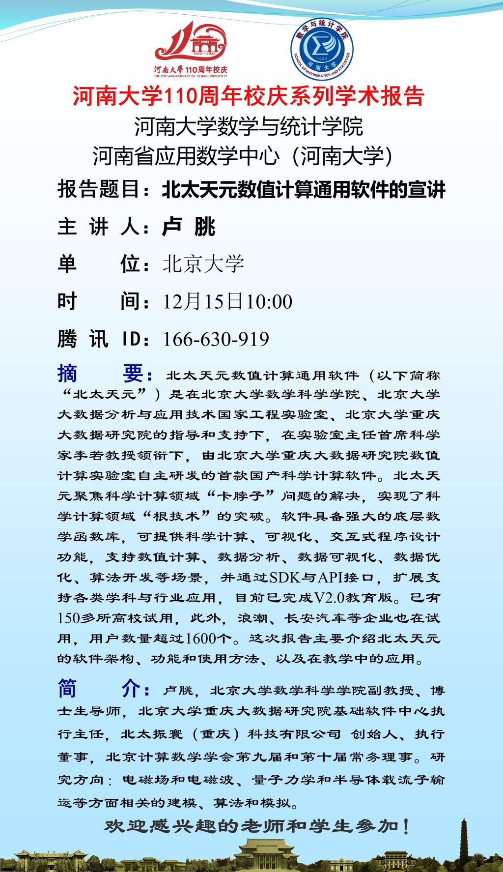 卢朓:北太天元数值计算通用软件的宣讲(时间:12.15)