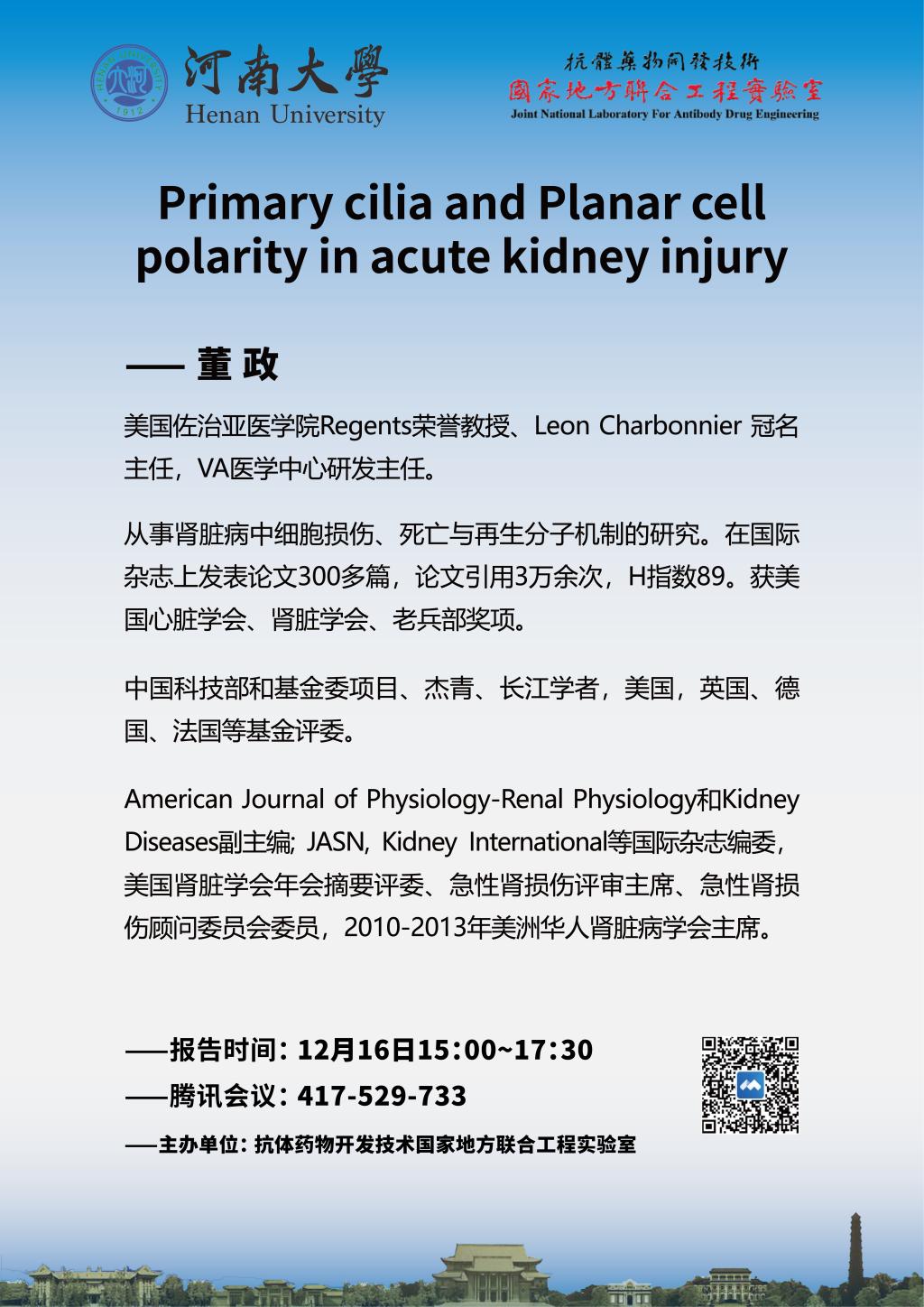 董政:Primary cilia and Planar cell polarity in acute kidney injury(时间12.16)