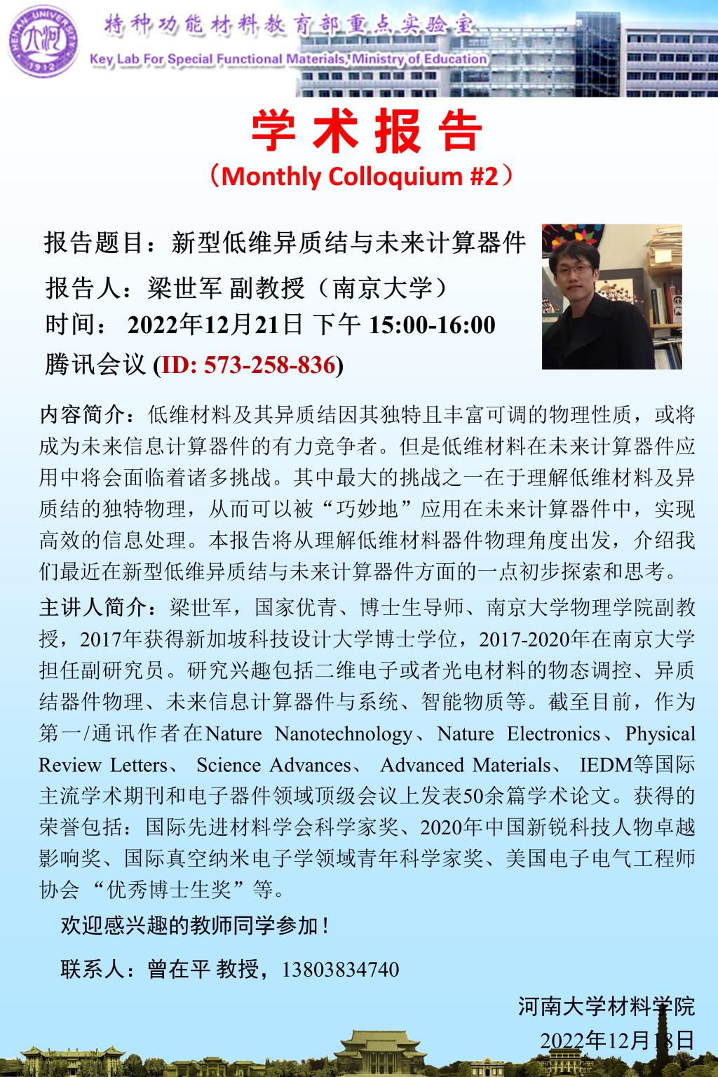 梁世军:新型低维异质结构与未来计算器件(时间12.21)
