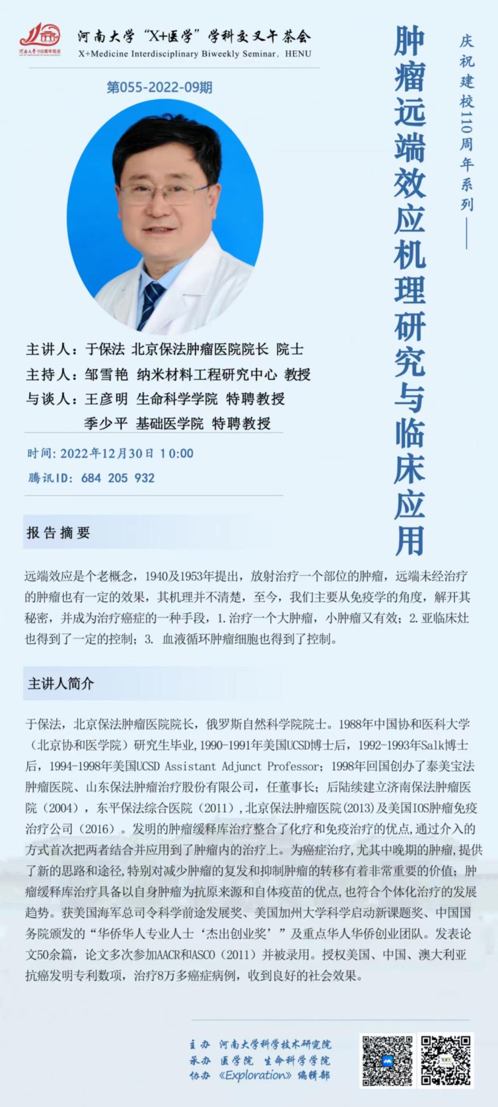 X+MIBS|于保法:肿瘤远端效应机理研究与临床应用(12.30)