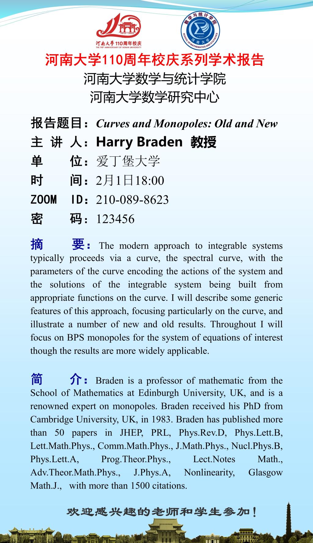 Harry Braden:Curves and Monopoles: Old and New(时间:2.1)