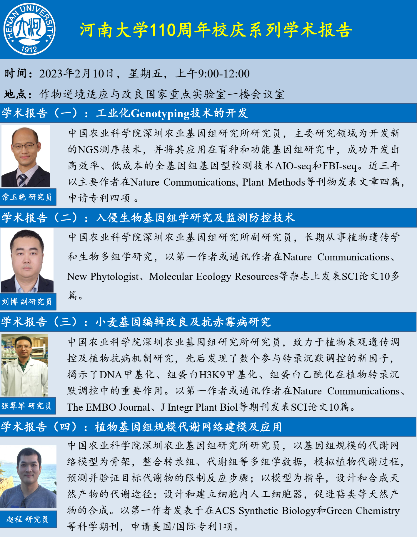 作物逆境适应与改良国家重点实验室学术报告会(时间2.10)