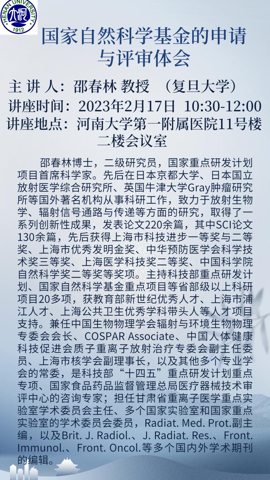 邵春林:国家自然科学基金的申请与评审体会(时间2.17)