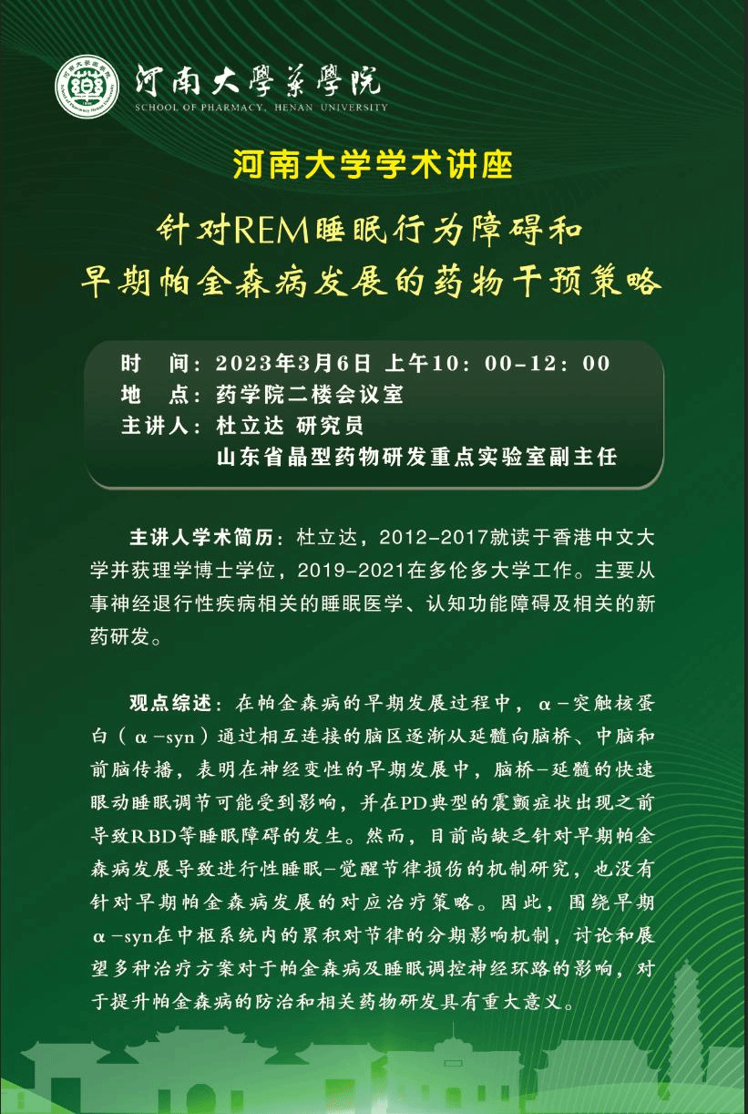 杜立达:针对REM睡眠行为障碍和早期帕金森病发展的药物干预策略(3.6)