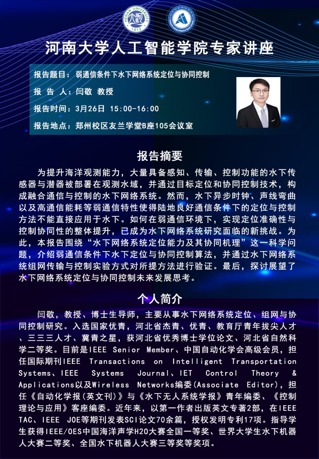 闫敬教授:弱通信条件下水下网络系统定位与协同控制(3.26)