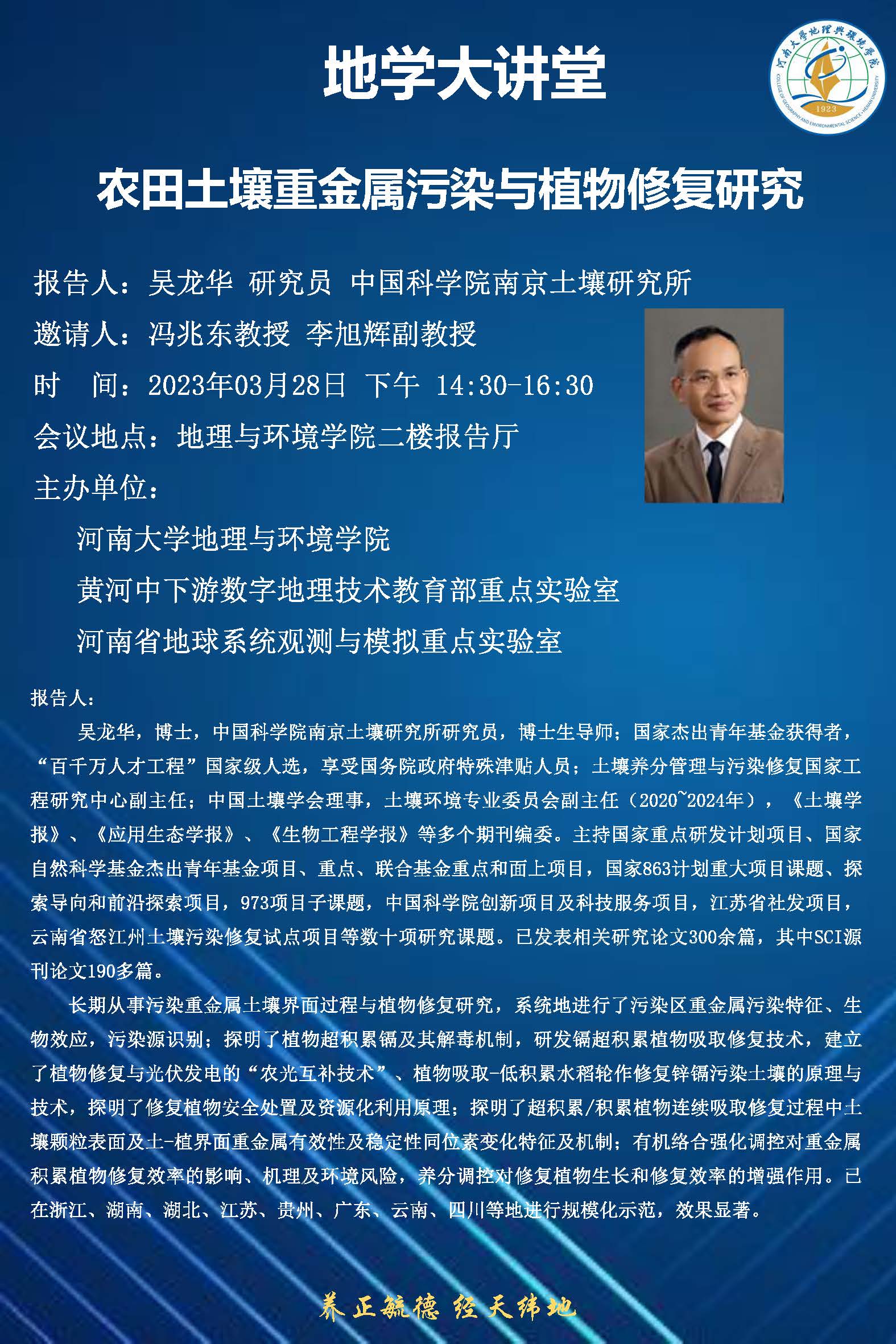 地学大讲堂:吴龙华-农田土壤重金属污染与植物修复研究(时间3.28)