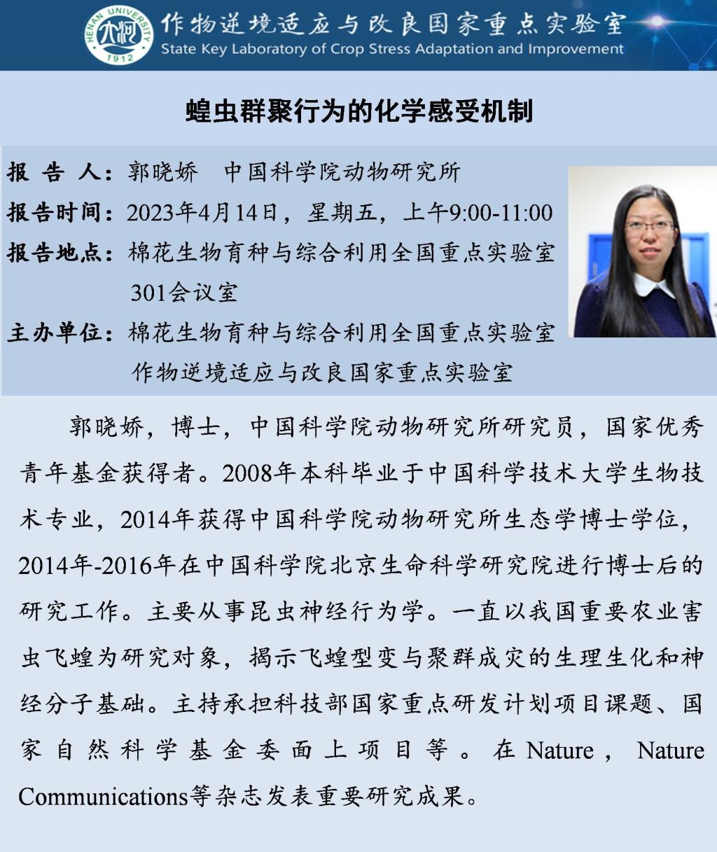 郭晓娇:蝗虫群聚行为的化学感受机制(时间4.14)