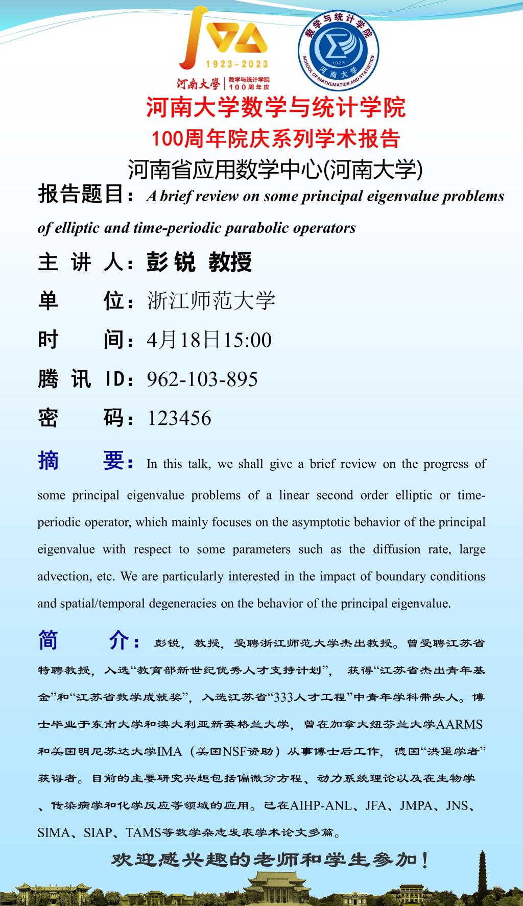 彭锐:A brief review on some principal eigenvalue problems of elliptic and time-periodic parabolic operators(时间:4.18)