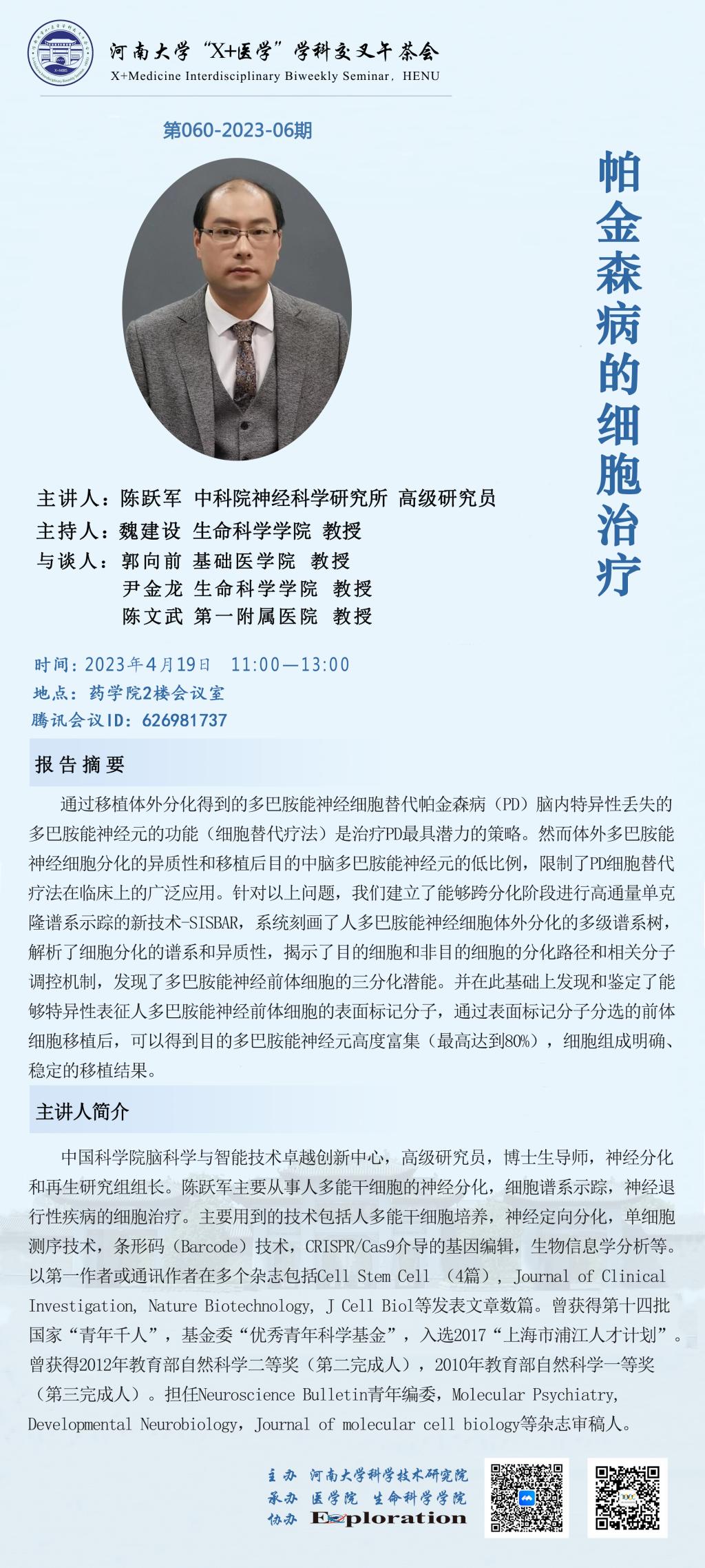 yl7703永利官网“X+医学”学科交叉午茶会:帕金森病的细胞治疗(时间4.19)