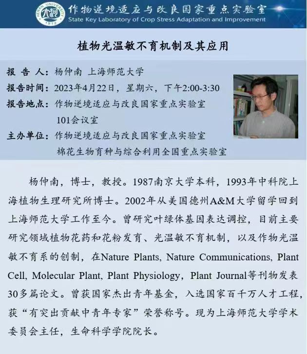 杨仲南:植物光温敏不育机制及其应用(时间4.22)