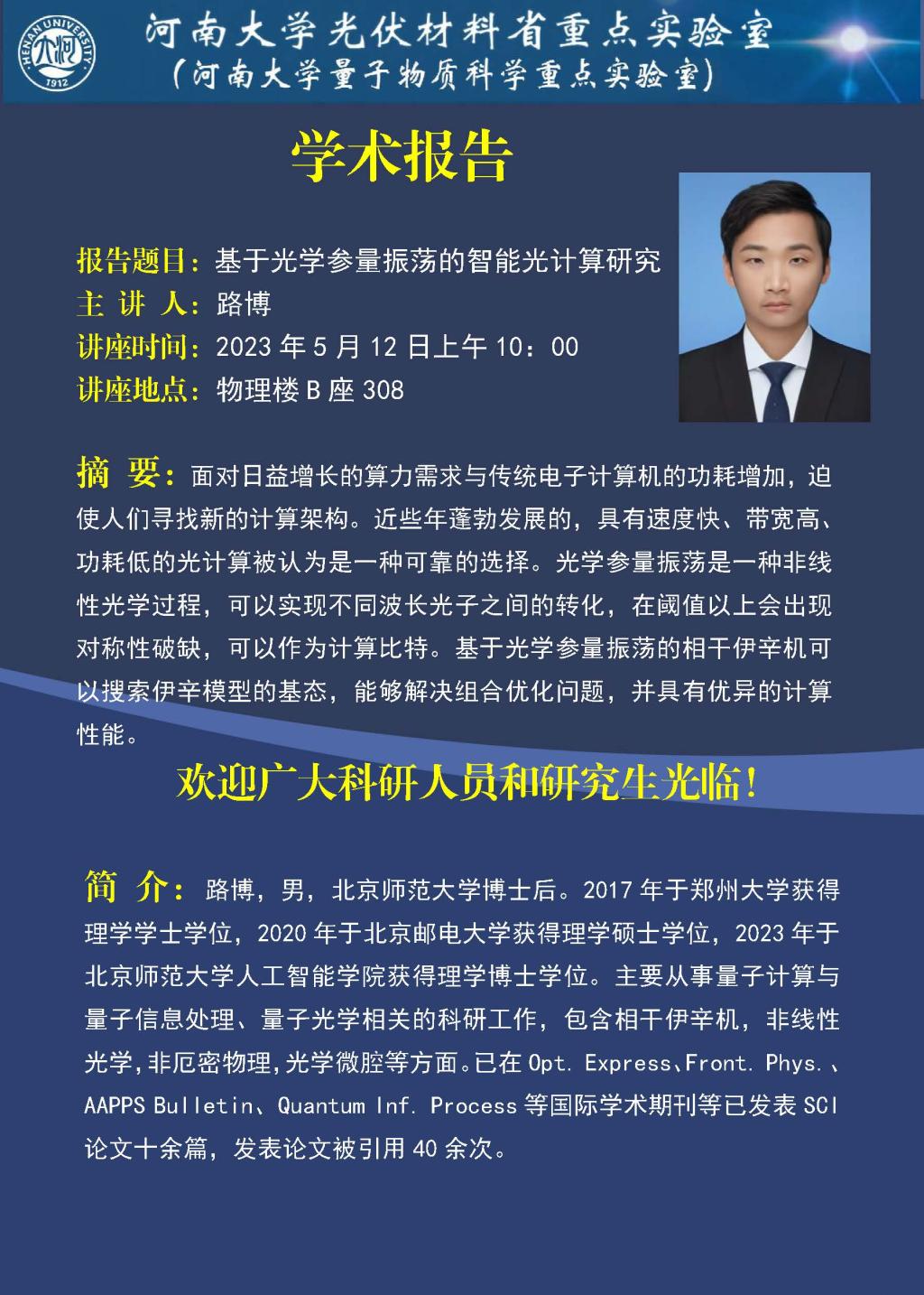 路博:基于光学参量振荡的智能光计算研究(时间5.12)