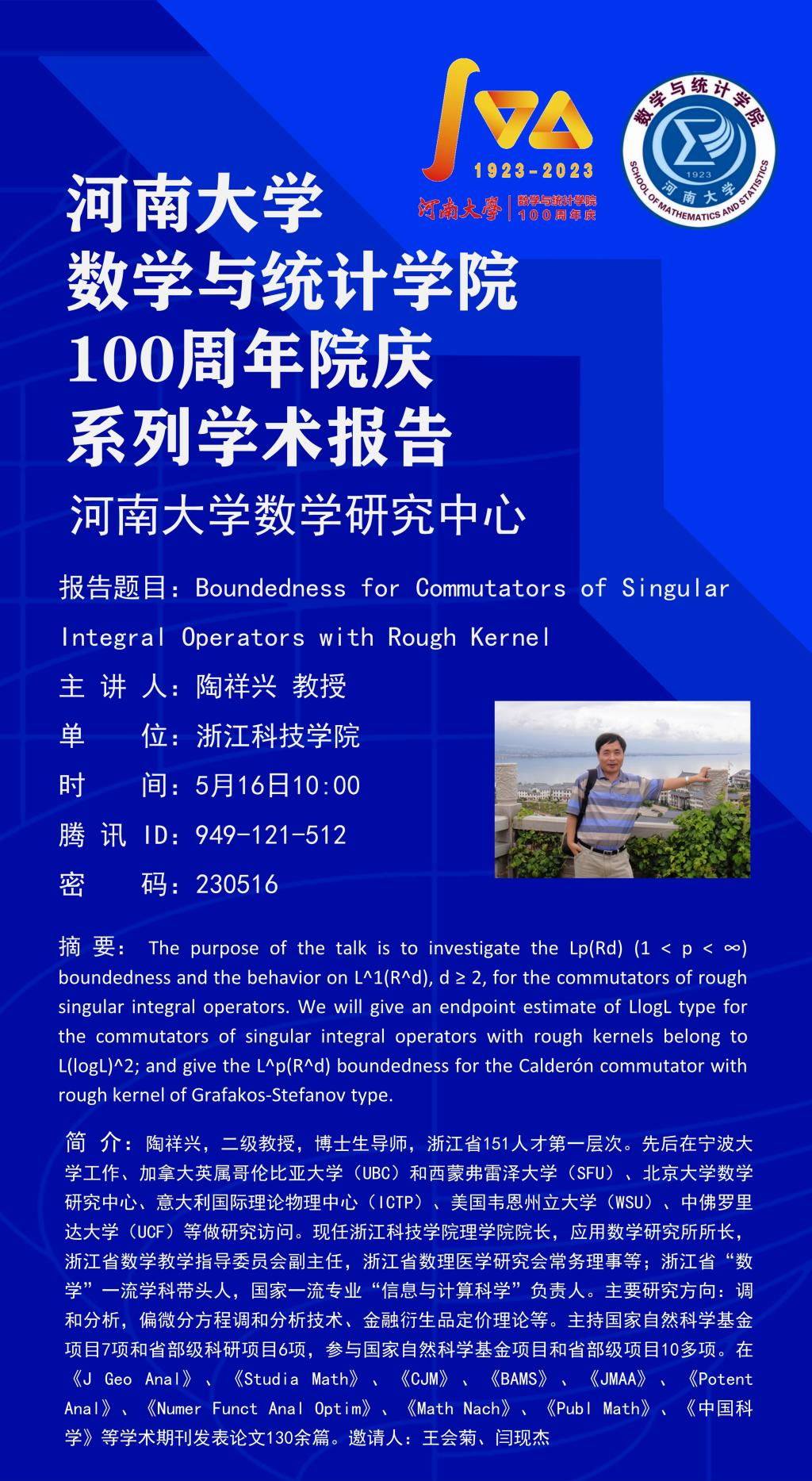 陶祥兴:Boundedness for Commutators of Singular Integral Operators with Rough Kernel(时间:5.16)