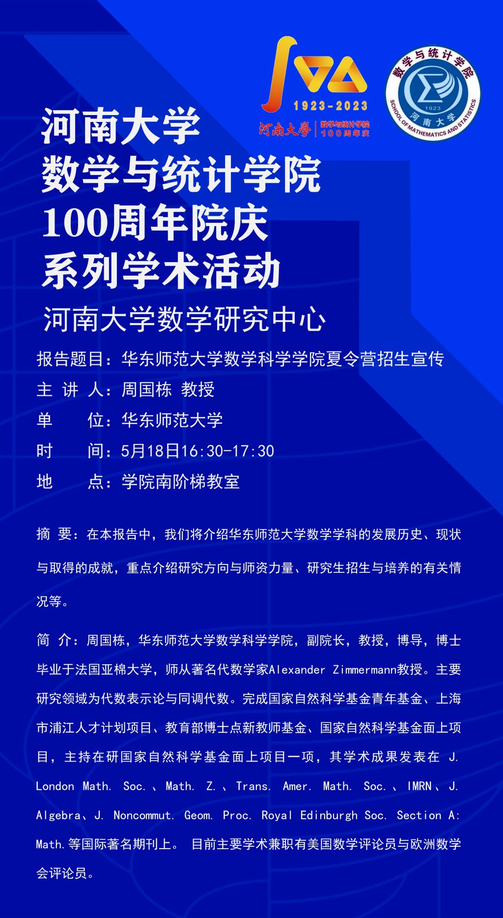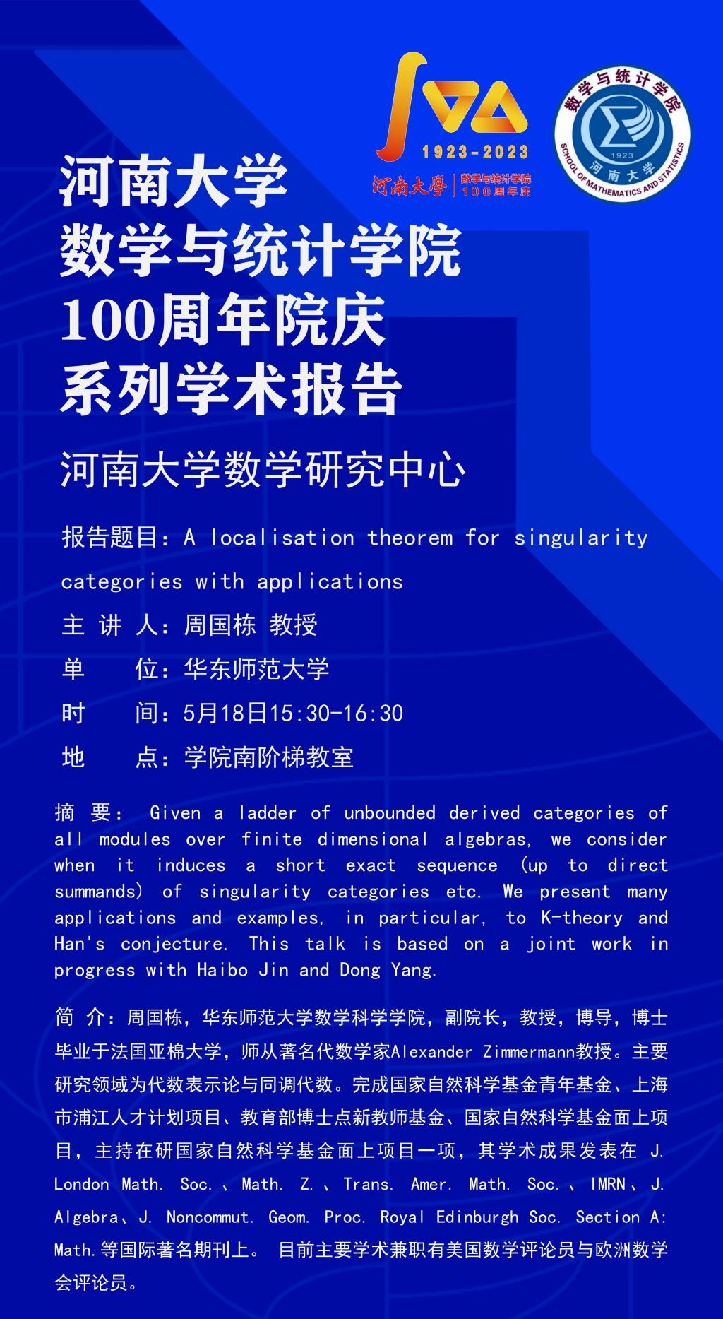 周国栋:A localisation theorem for singularity categories with applications、华东师范大学数学科学学院夏令营招生宣传(时间5.18)