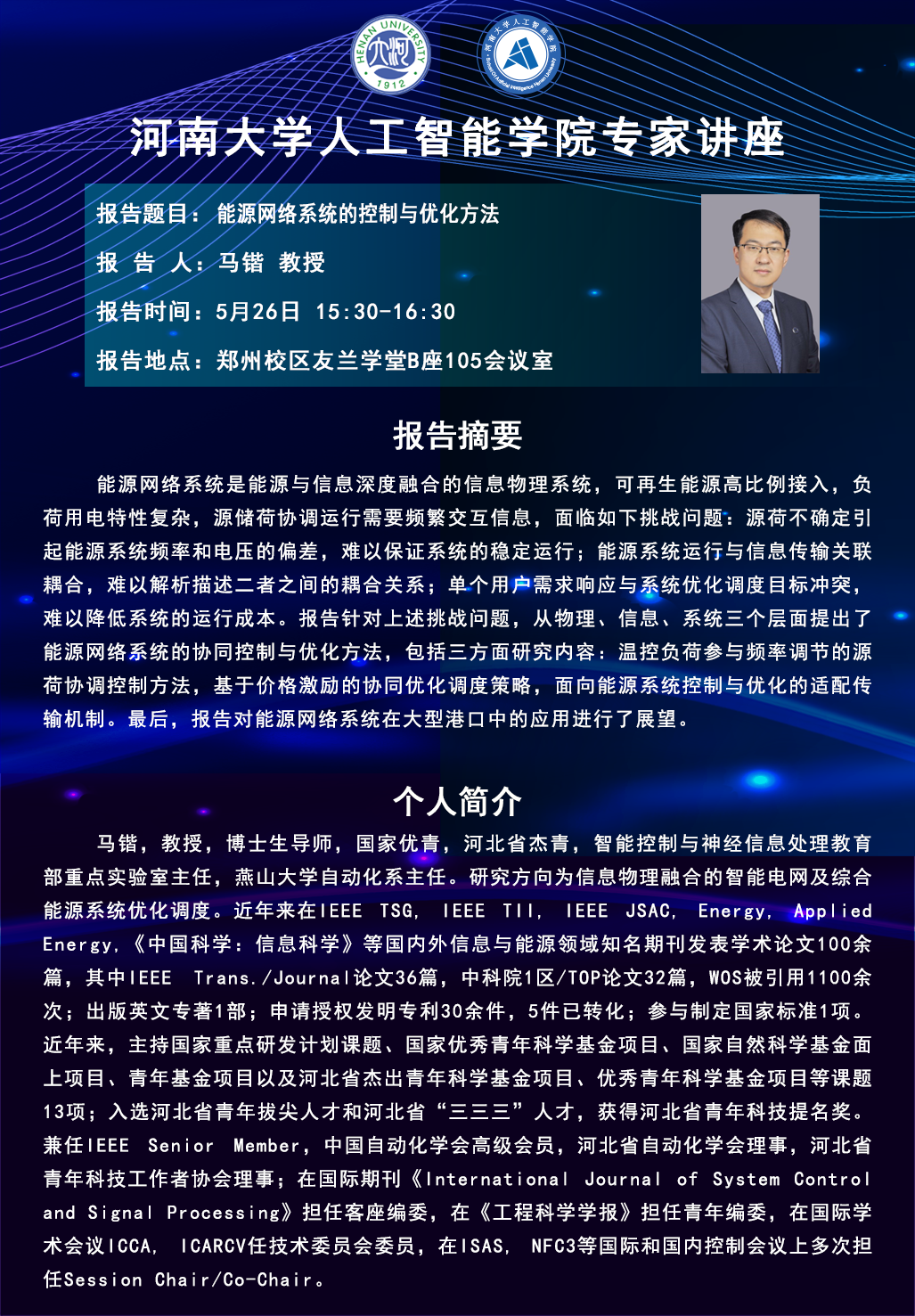 马锴:能源网络系统的控制与优化方法(时间5.26)