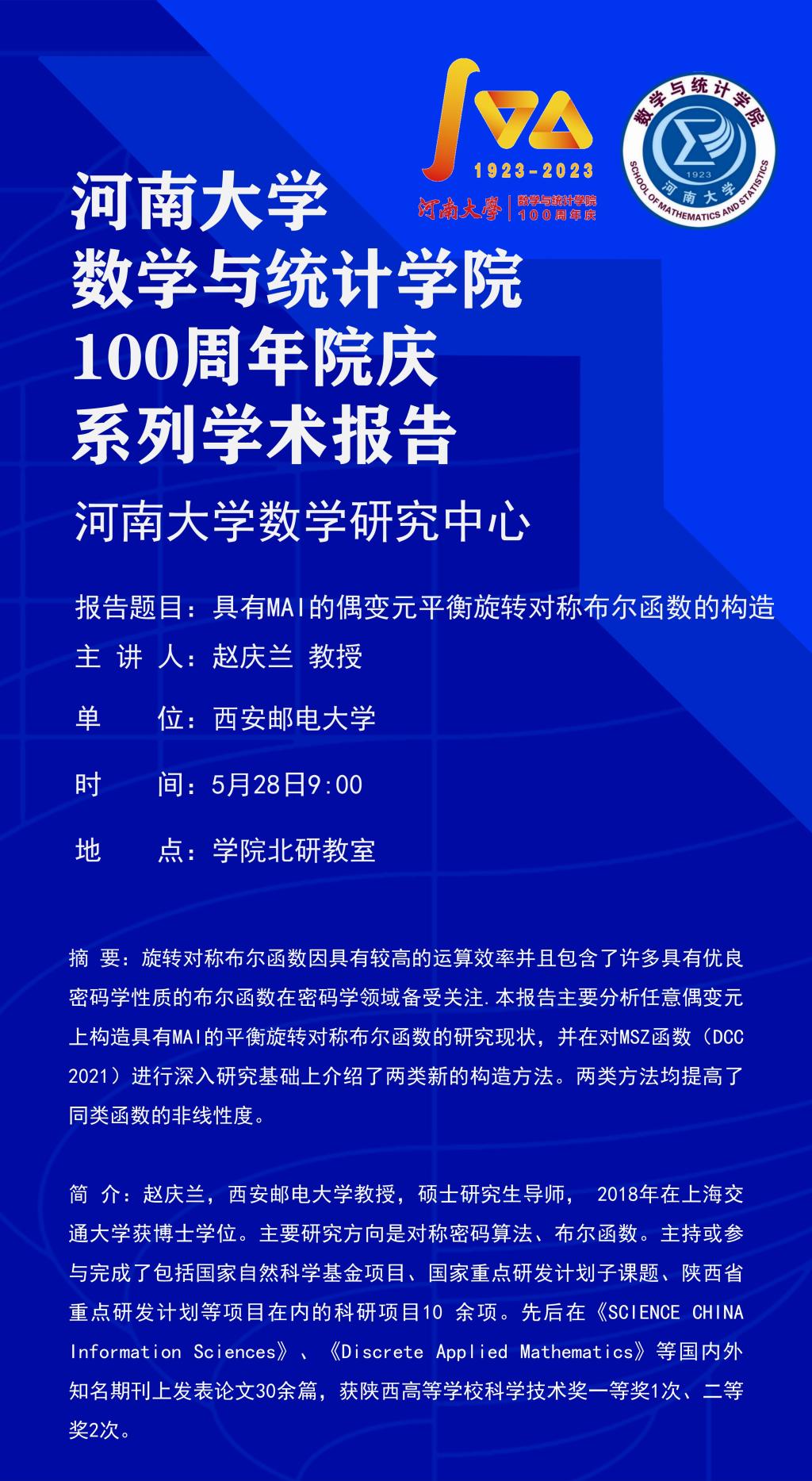 赵庆兰:具有MAI的偶变元平衡旋转对称布尔函数的构造(时间:5.28)