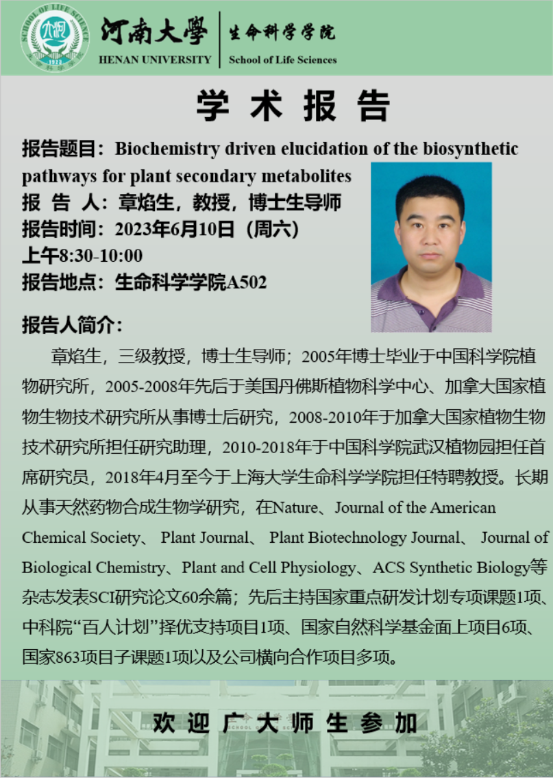 生命科学学院学术报告会(时间6.10)