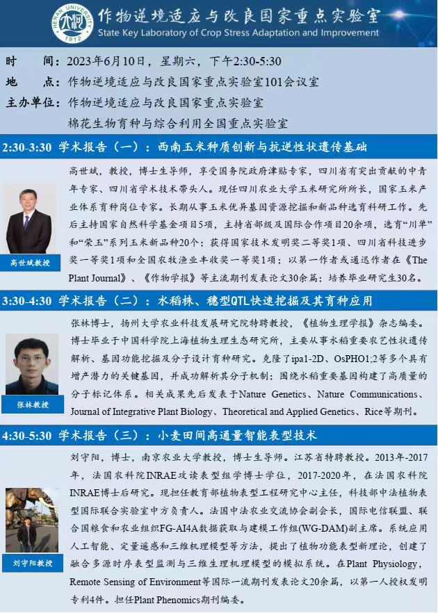 作物逆境适应与改良国家重点实验室学术报告会(时间6.10)