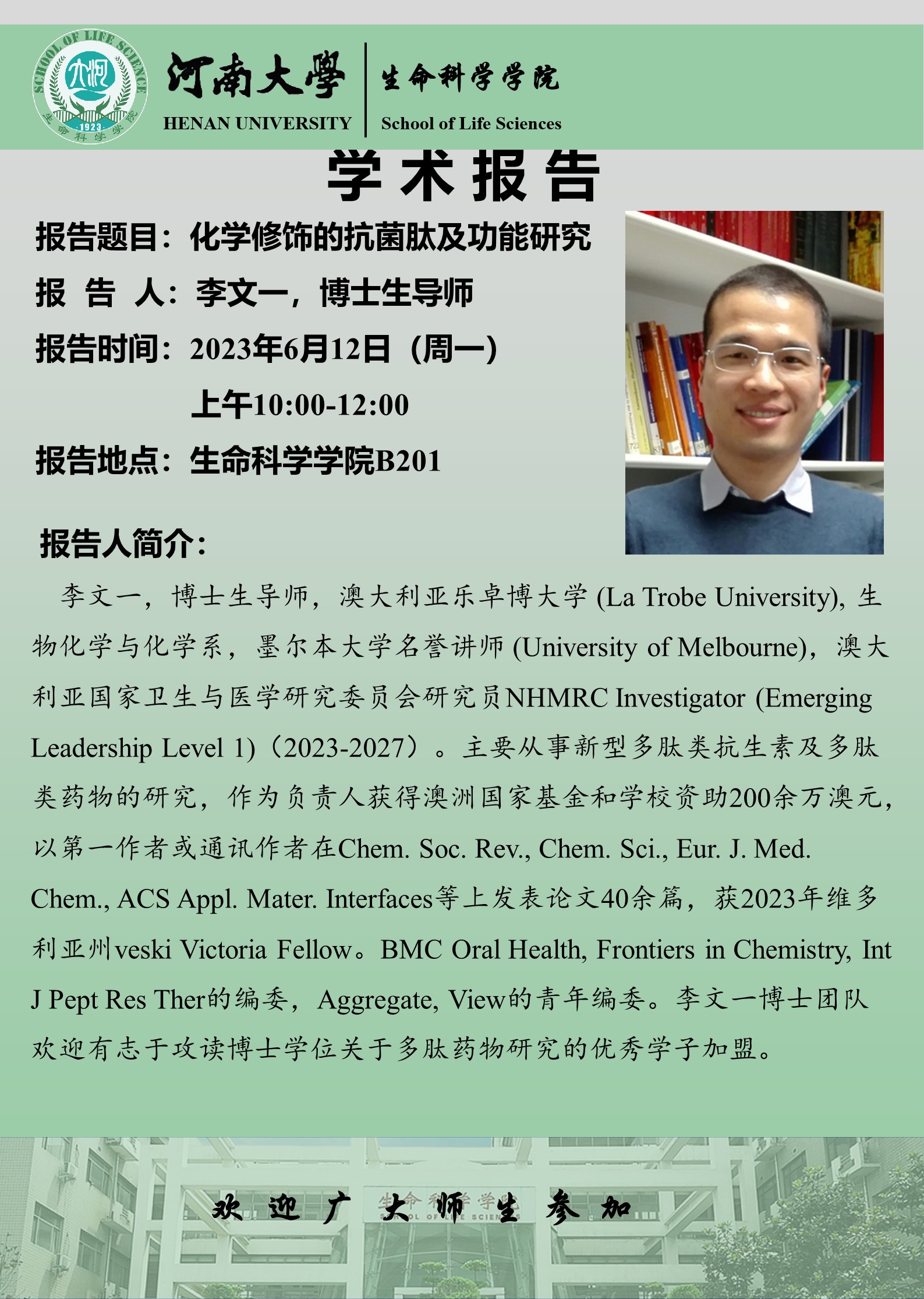 李文一:化学修饰的抗菌肽及功能研究(时间6.12)
