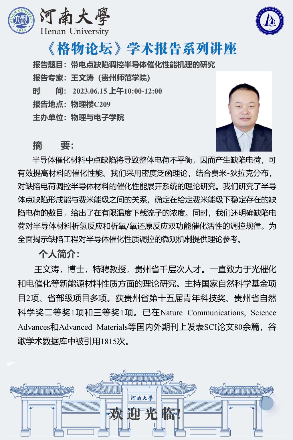 格物论坛:王文涛:带电点缺陷调控半导体催化性能机理的研究(时间6.15)
