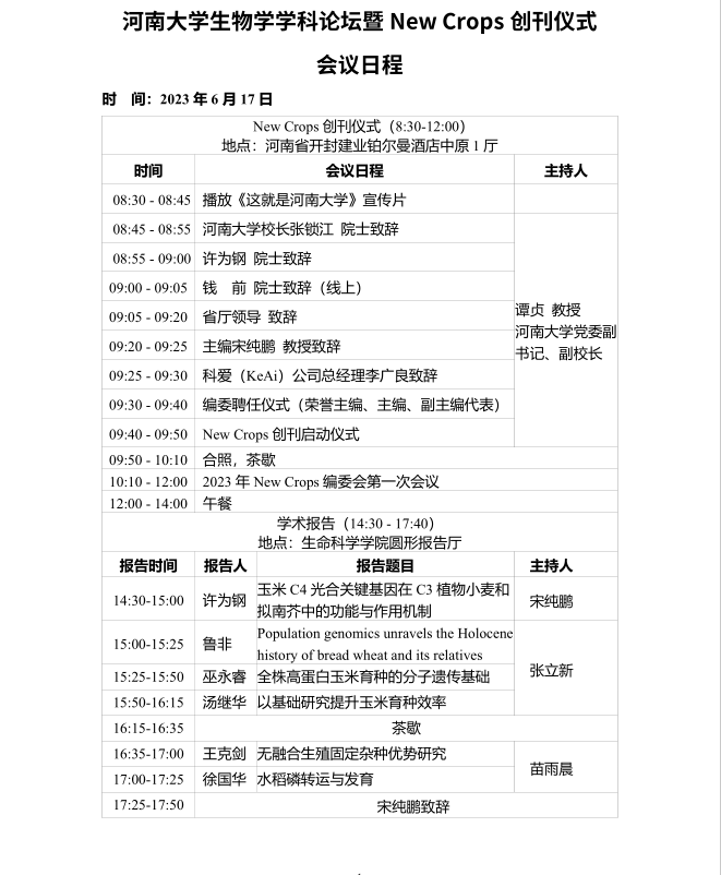 yl7703永利官网生物学学科论坛暨NEW Crops创刊仪式(时间6.17)