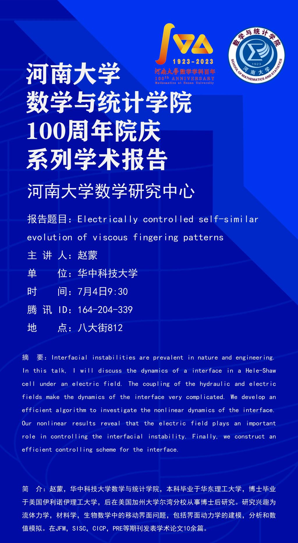 赵蒙:Electrically controlled self-similar evolution of viscous fingering patterns(时间:7.4)