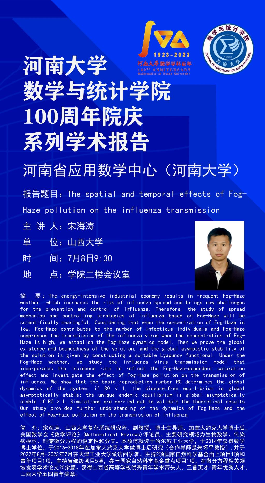宋海涛:The spatial and temporal effects of Fog-Haze pollution on the influenza transmission(时间:7.8)