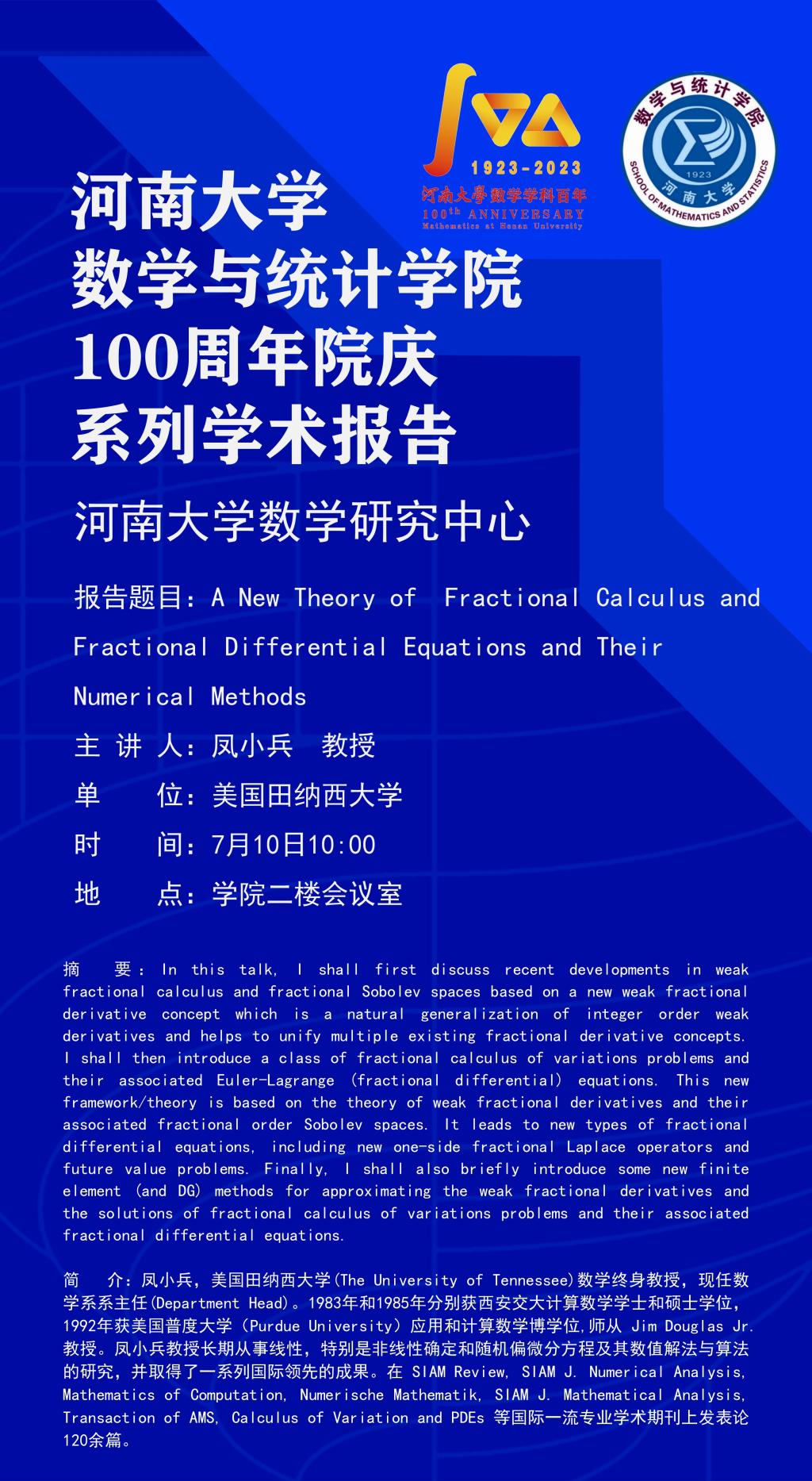 凤小兵:A New Theory of Fractional Calculus and Fractional Differential Equations and Their Numerical Methods(时间:7:10)