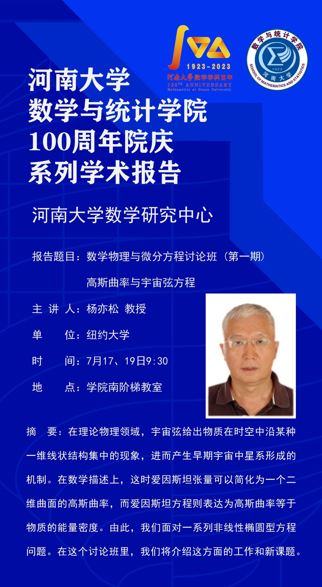 杨亦松:高斯曲率与宇宙弦方程(时间7.17、7.19)