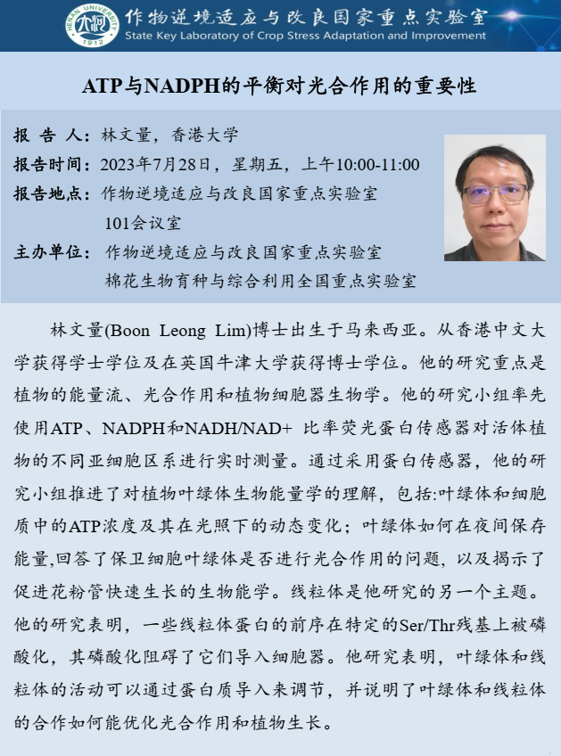 林文量:ATP与ADPH的平衡对光合作用的重要性(时间7.28)