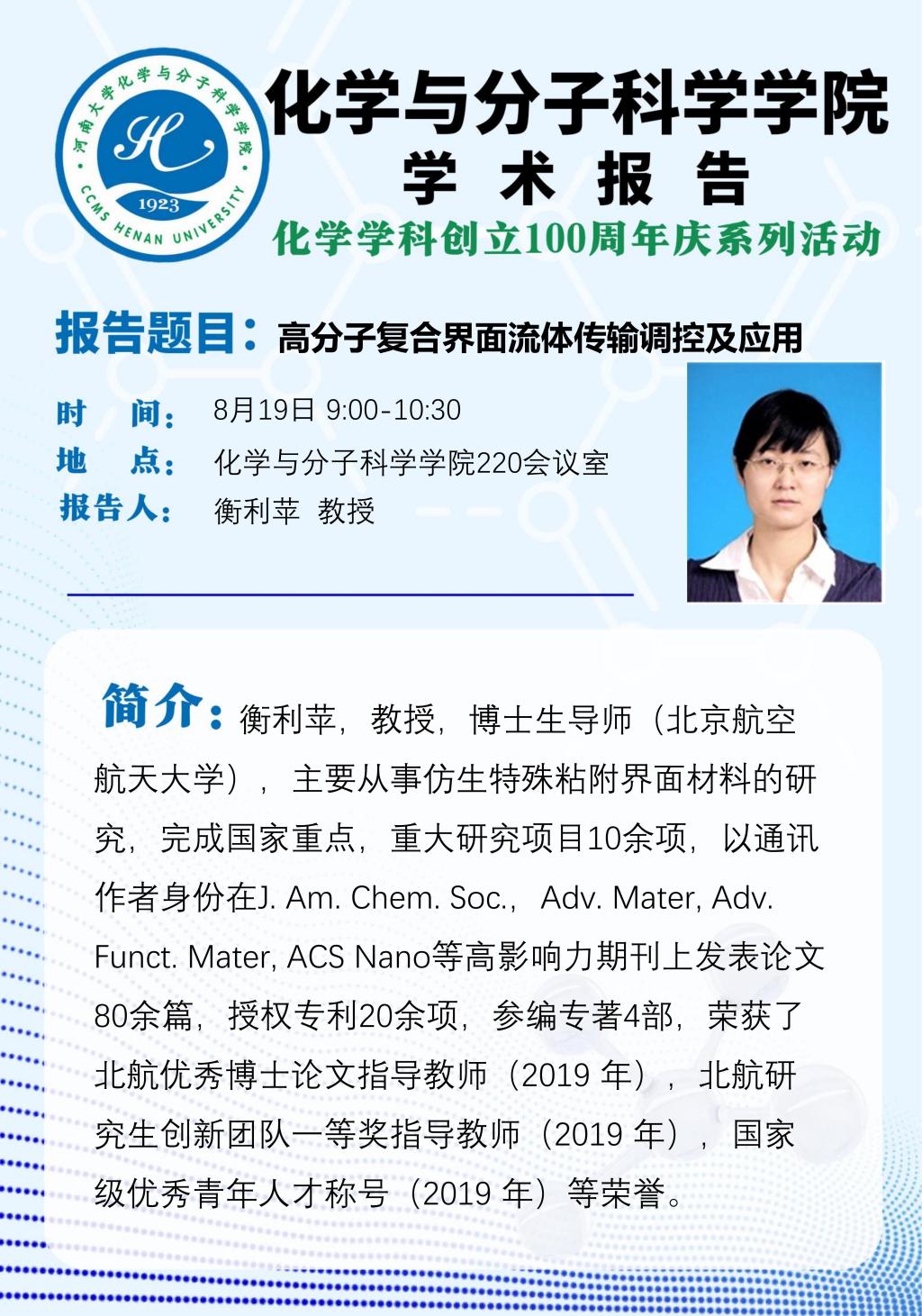 高分子复合界面液体传输调控及应用、纳米抗肿瘤药物(时间8.19)