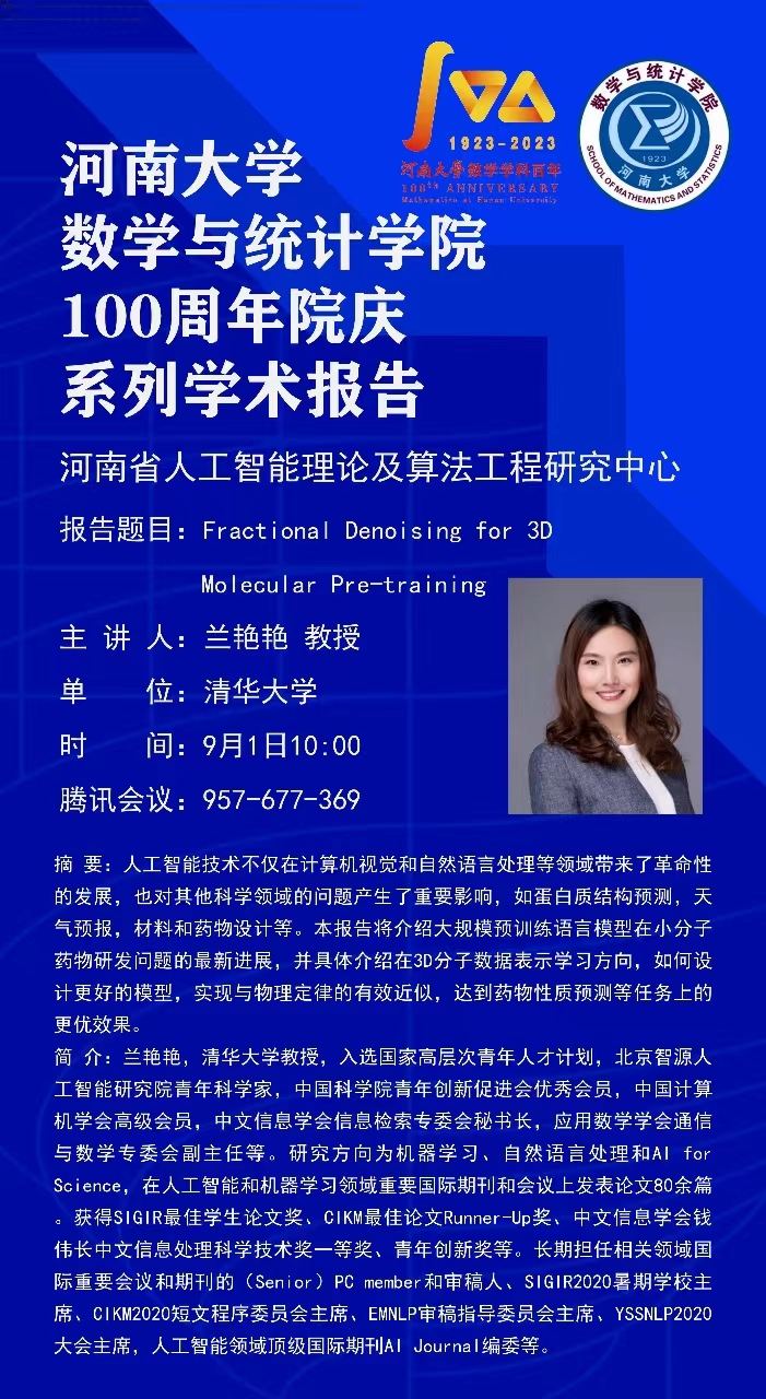 兰艳艳:Fractional Denoising for 3D Molecular Pre-training(时间:9.1)