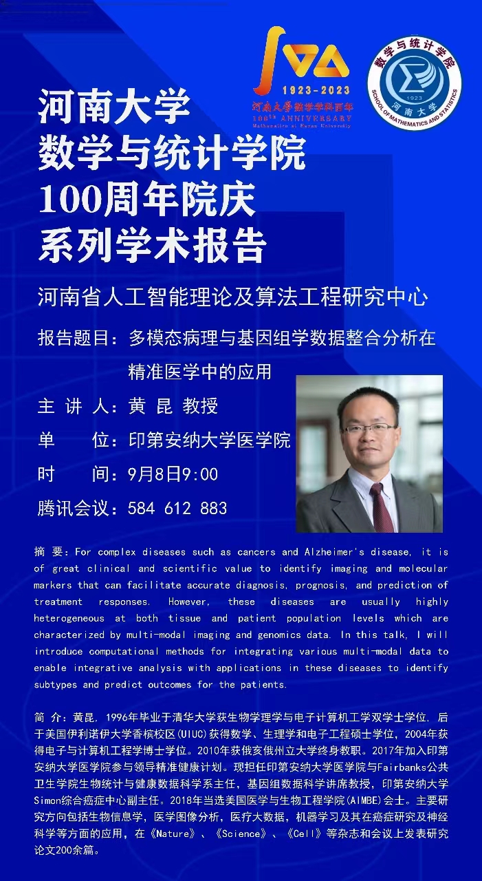 黄昆:多模态病理与基因组学数据整合分析在精准医学中的应用(时间:9.8)