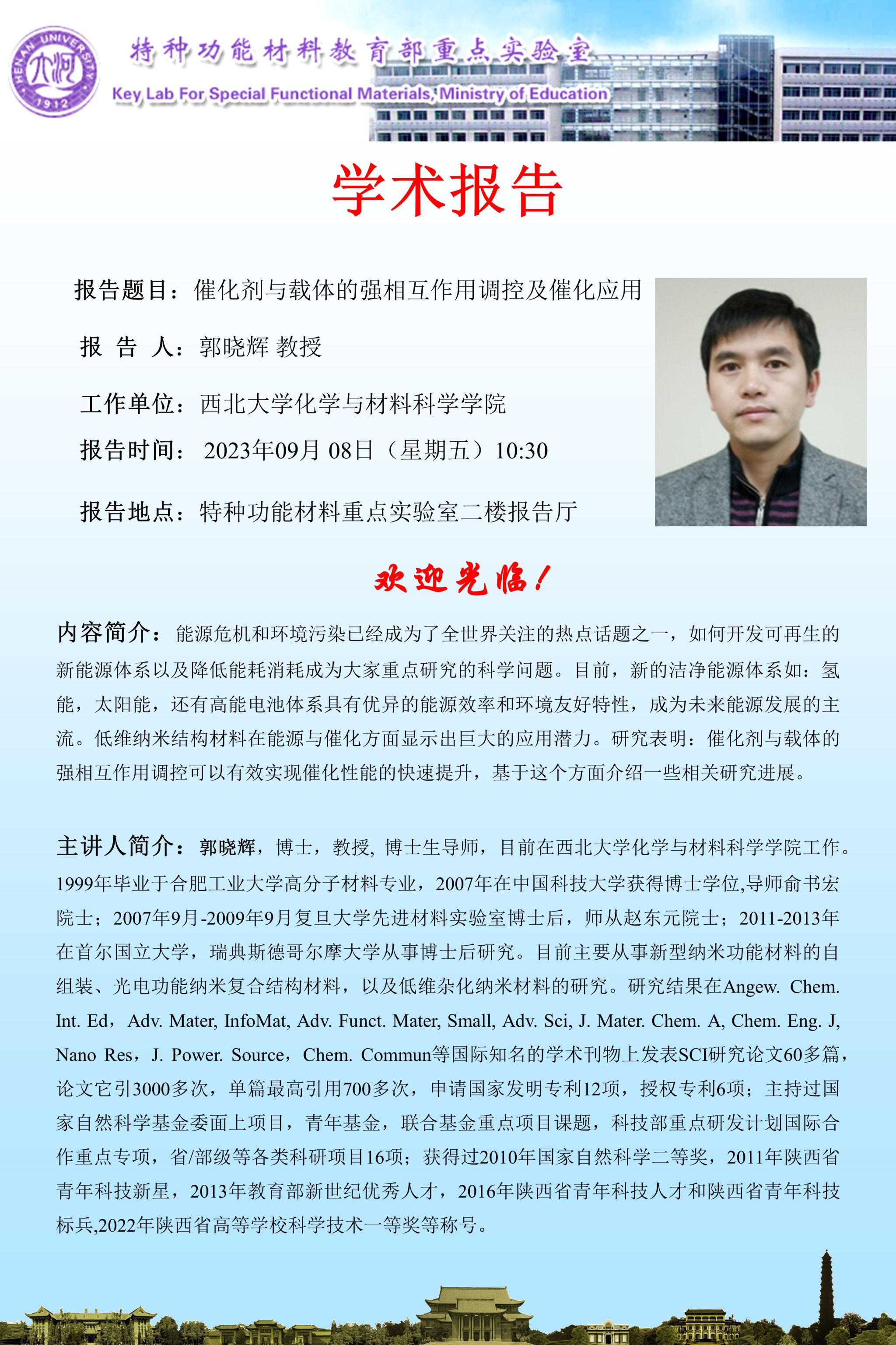 郭晓辉 报告题目:催化剂与载体的强相互作用调控及催化应用(时间:9月8日)