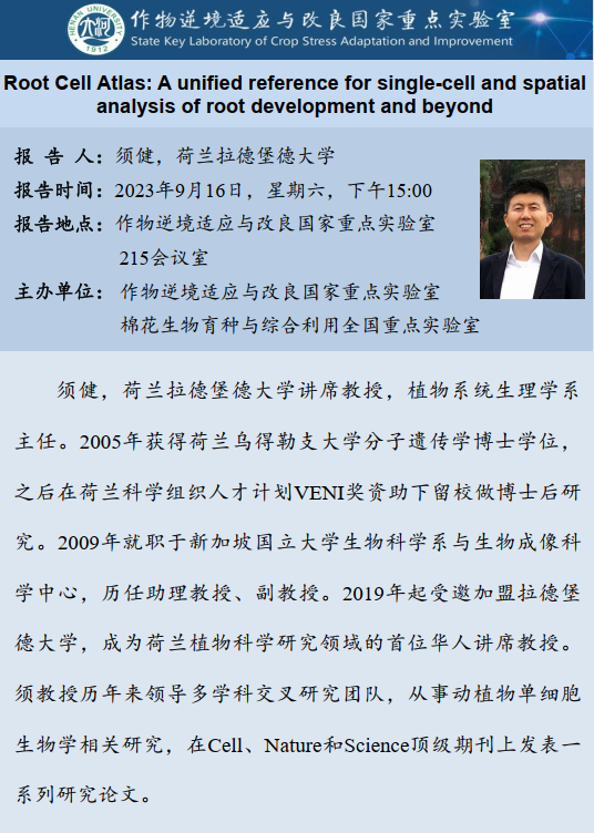 须健:Root Cell Atlas: A unified reference for single-cell and spatial analysis of root development and beyond(时间:9月16日)