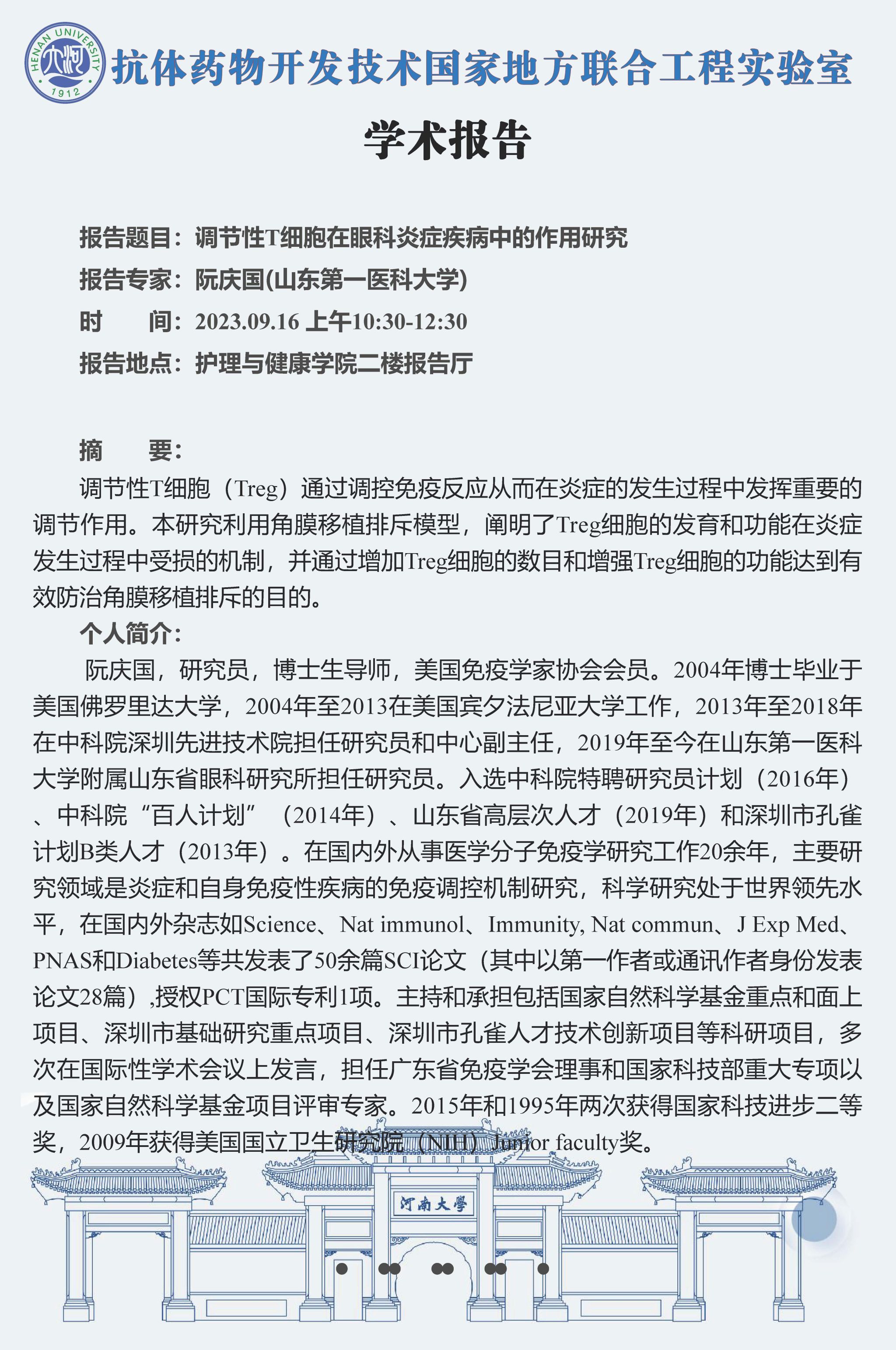 阮庆国:调节性T细胞在眼科炎症疾病中的作用研究(时间:9月16日)