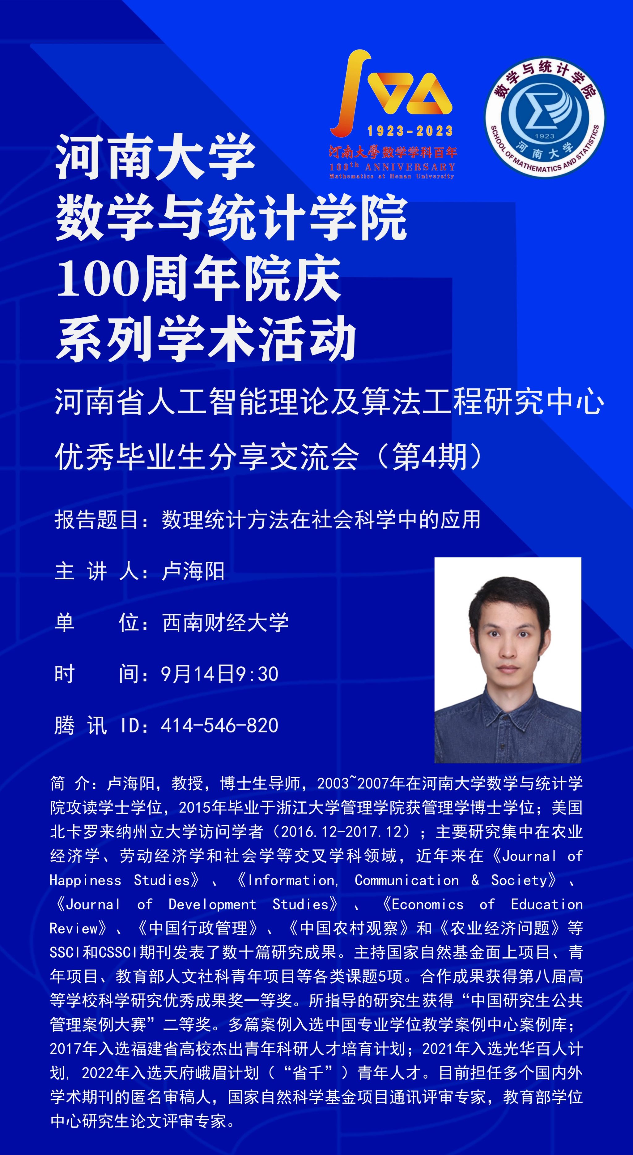 卢海阳:数理统计方法在社会科学中的应用(时间:9月14日)