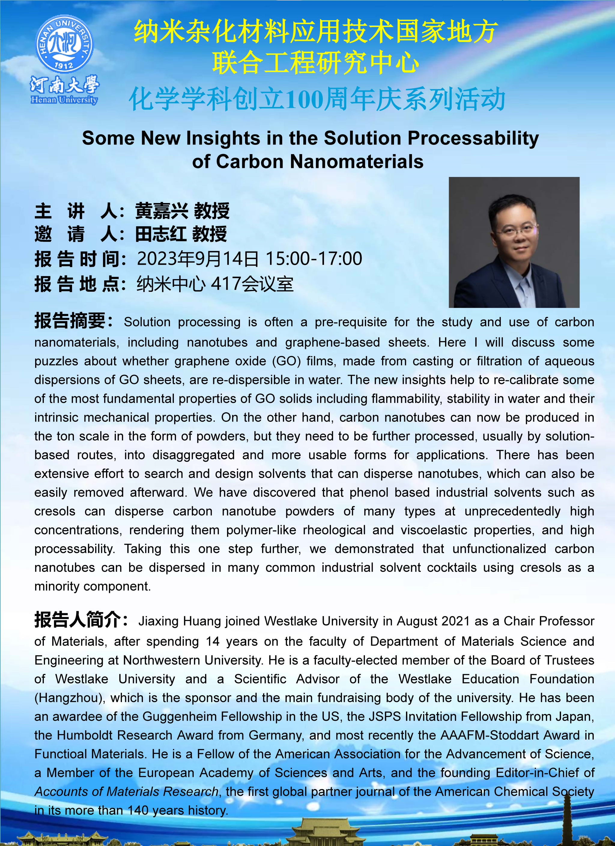 黄嘉兴:Some New Insights in the Solution Processability of Carbon Nanomaterials(时间9月14日)