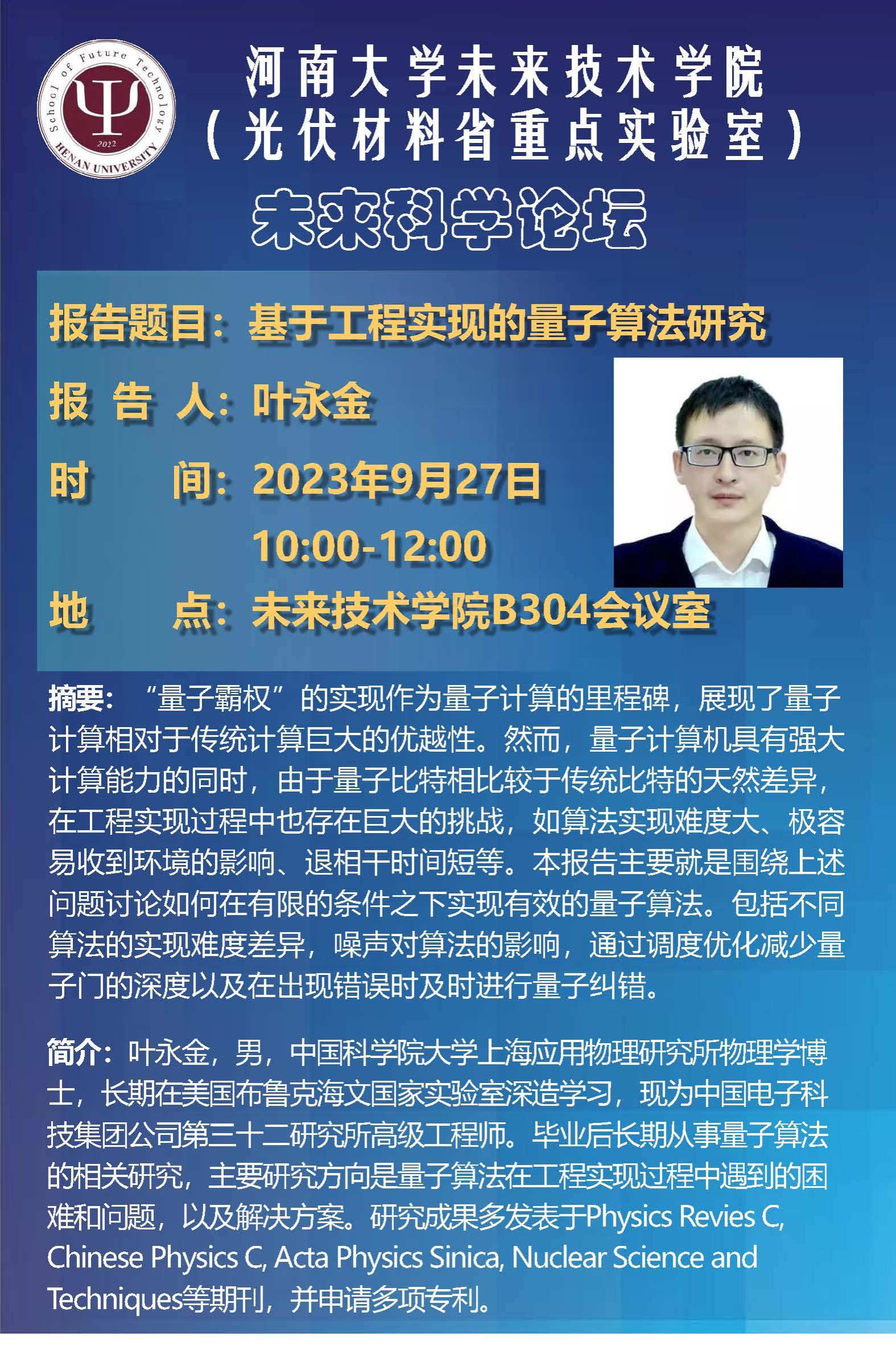 叶永金:基于工程实现的量子算法研究(时间:9月27日)