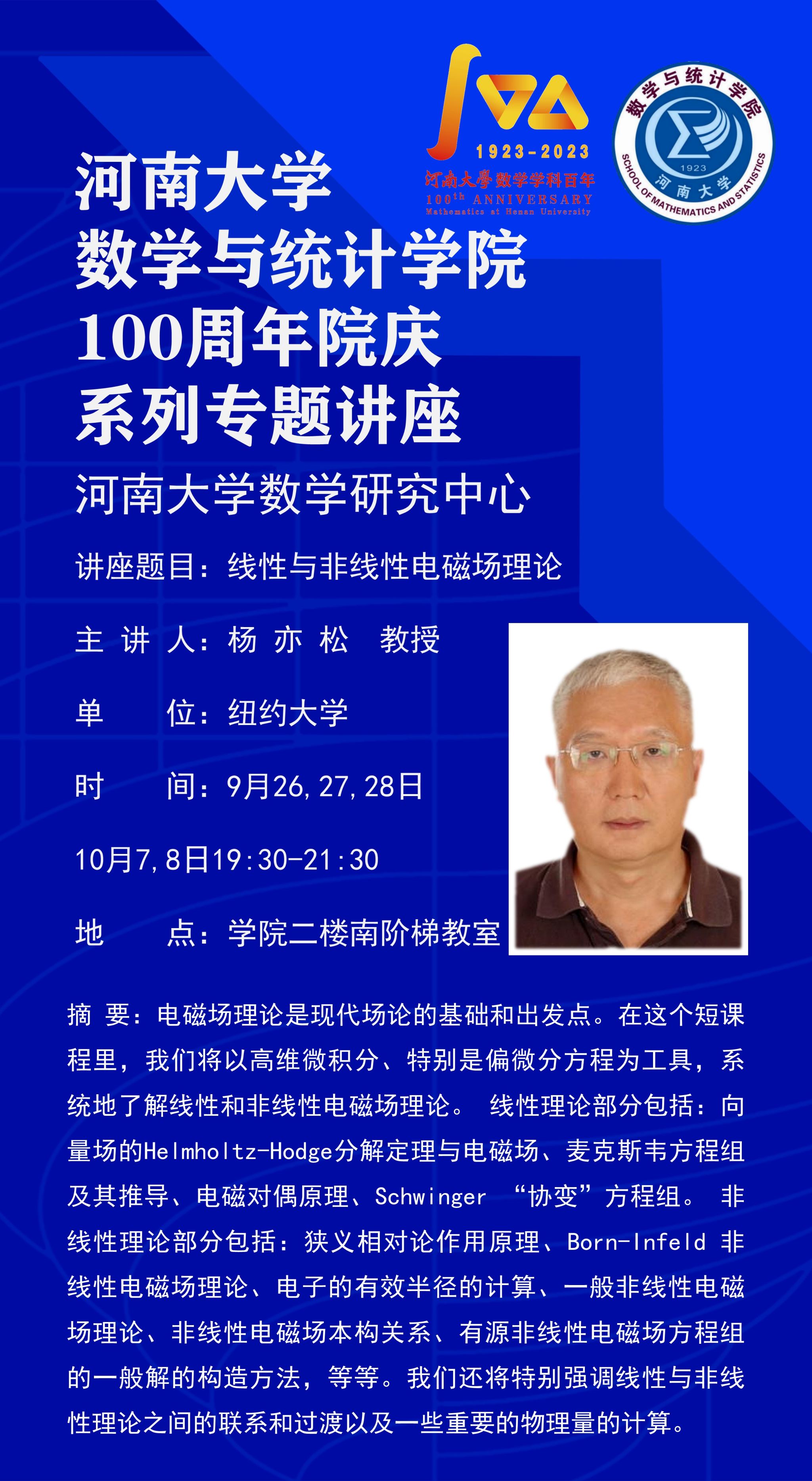 杨亦松:线性与非线性电磁场理论(时间:9月26, 27, 28日,10月7, 8日)