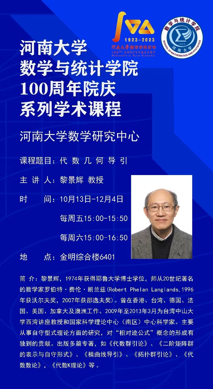 黎景辉:代数几何导引(时间:10月13日-12月4日)
